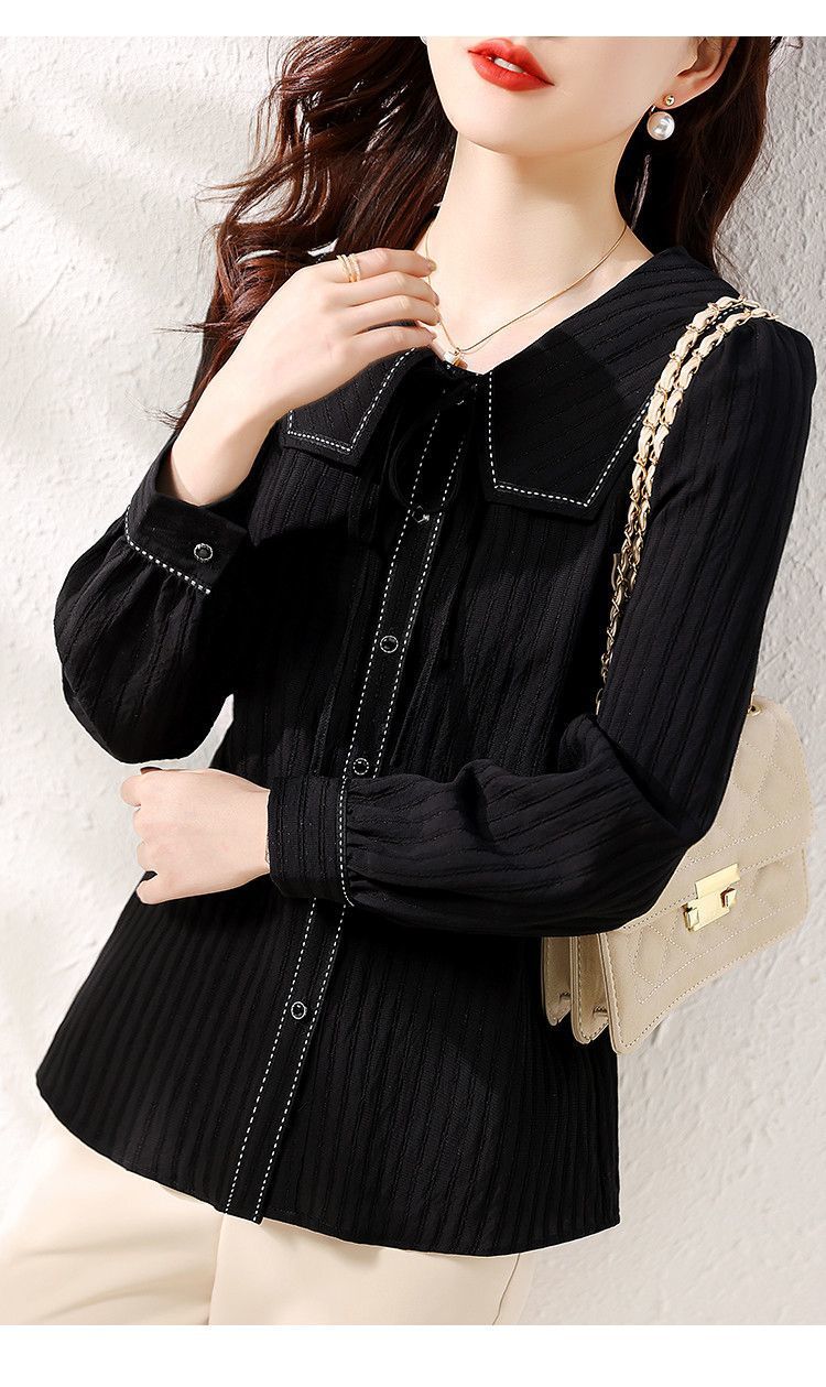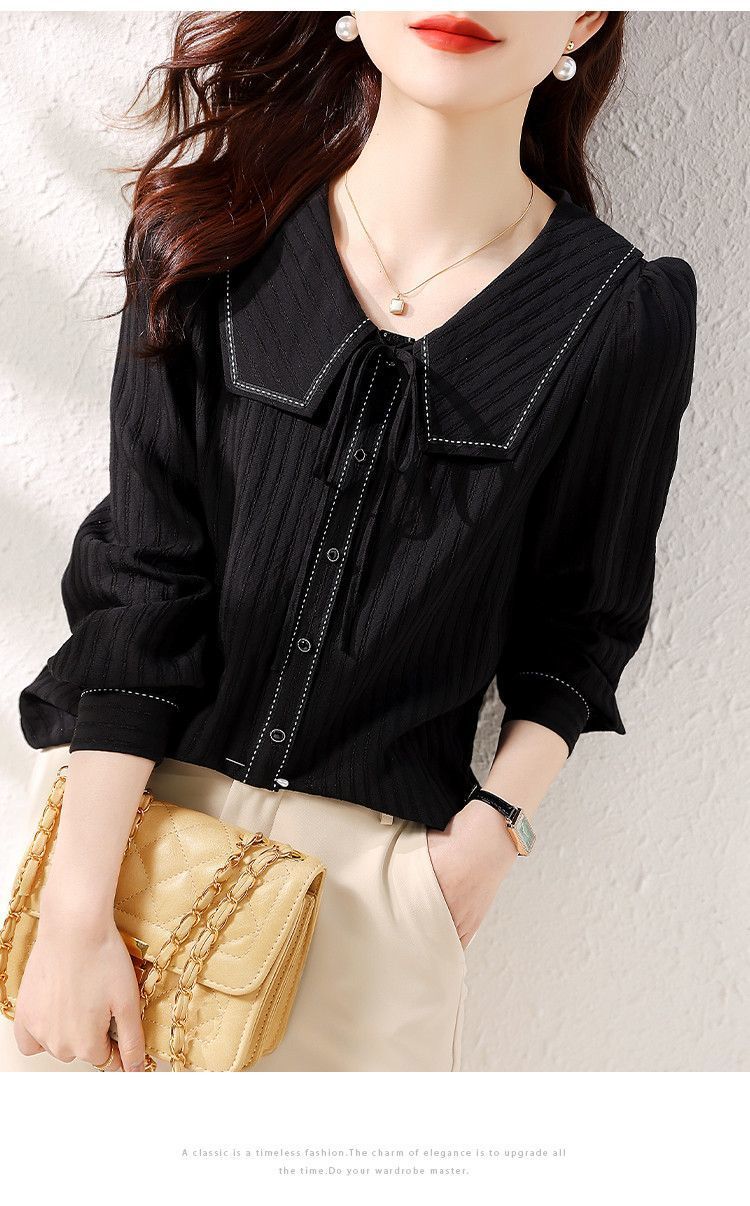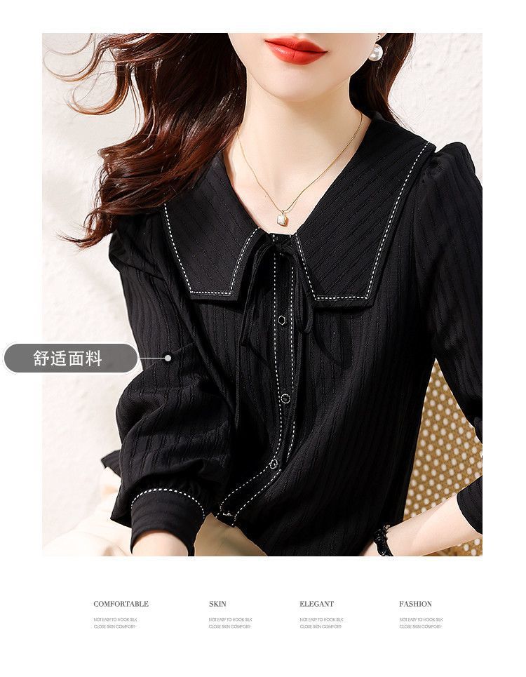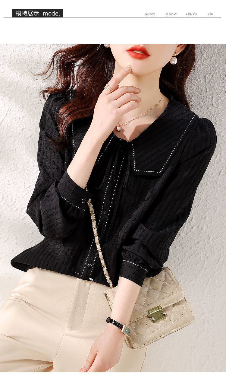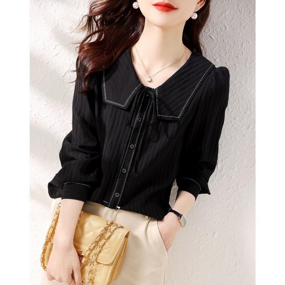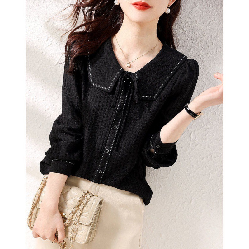 새로운 도시 스타일 간단한 나이 감소 올 매치 플라잉 슬리브 긴 소매 탑 우아한 쉬폰 셔츠스토어 가기