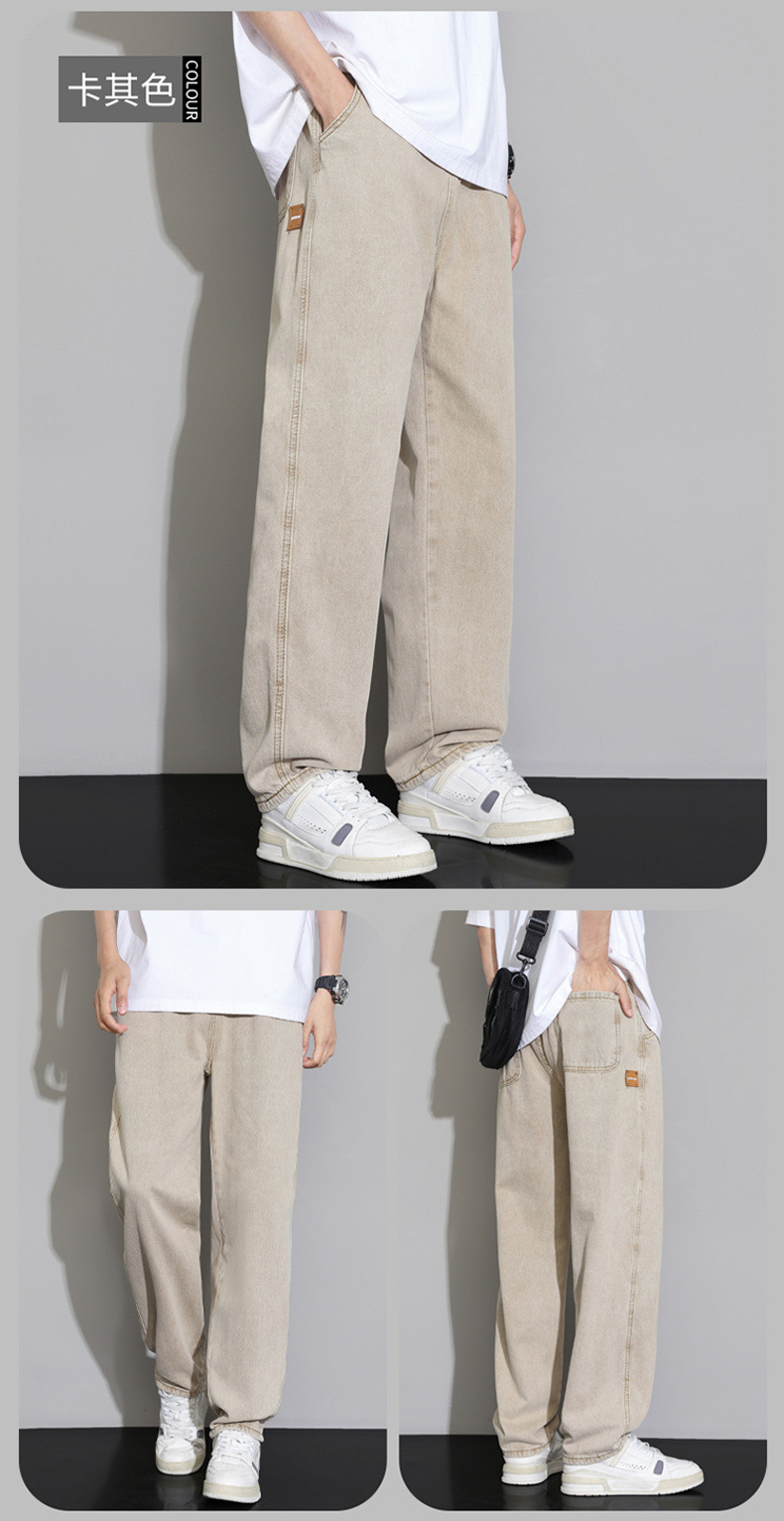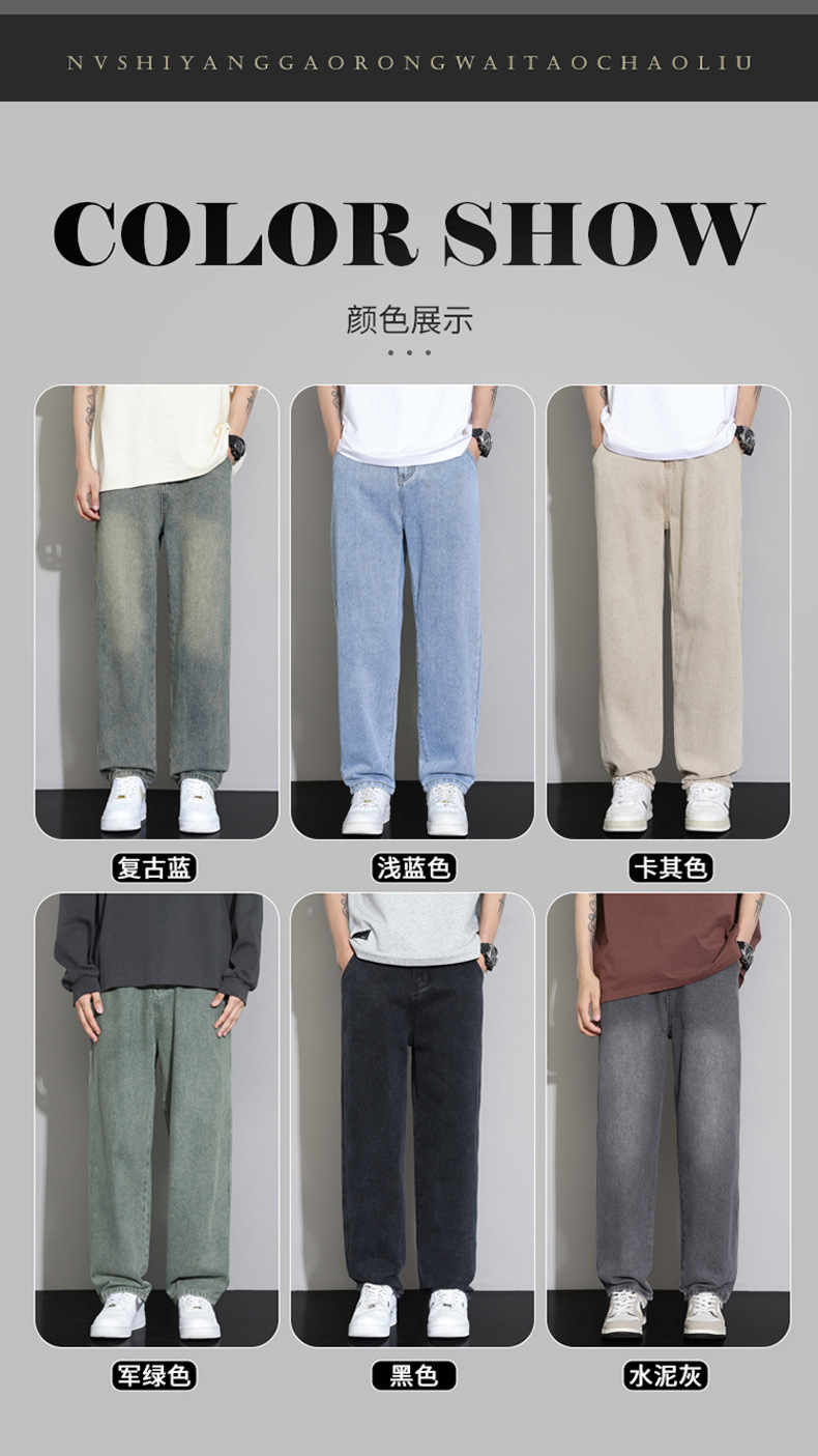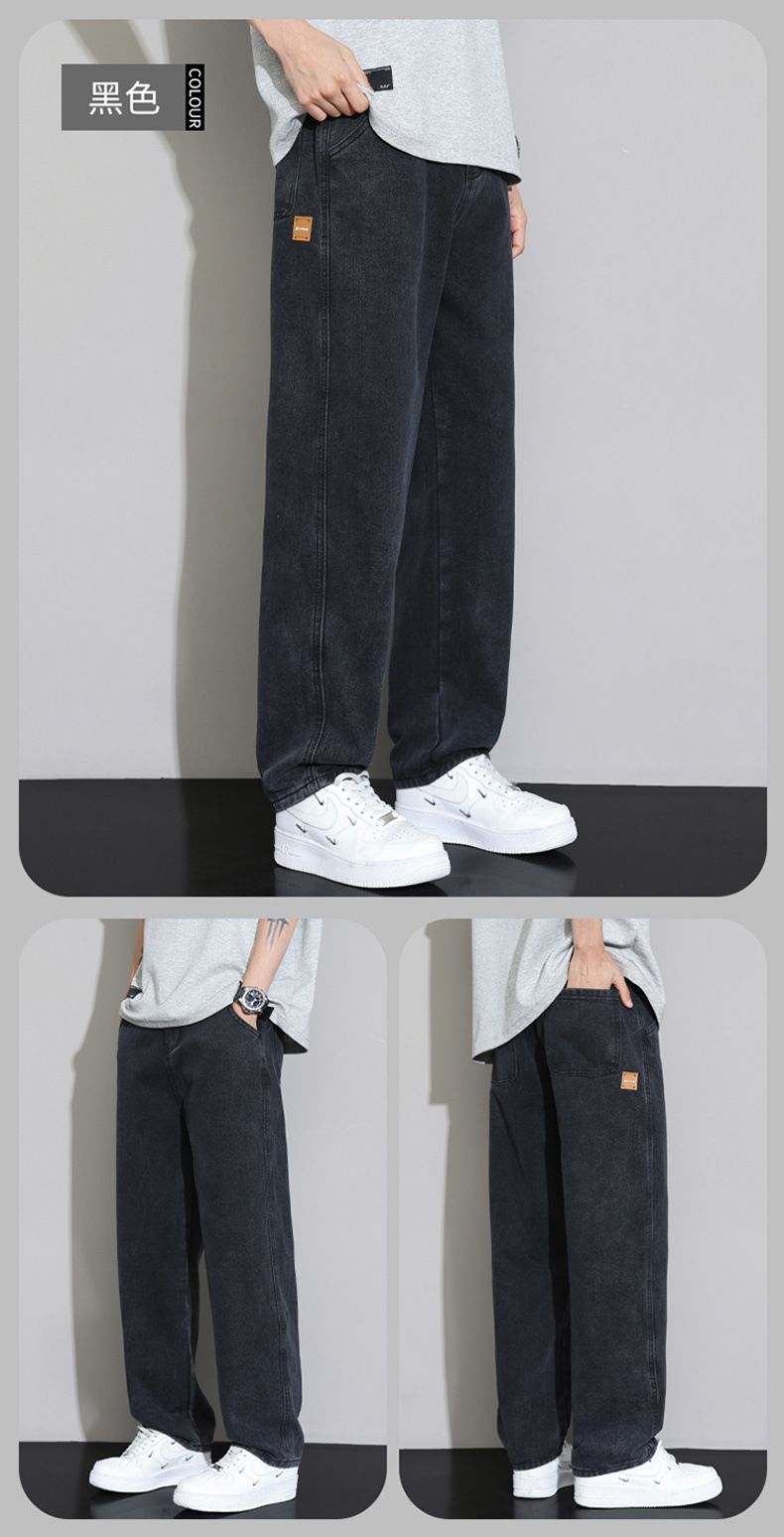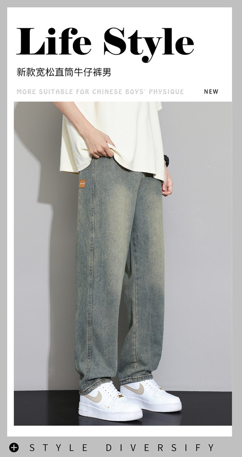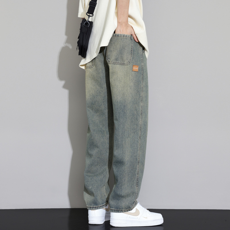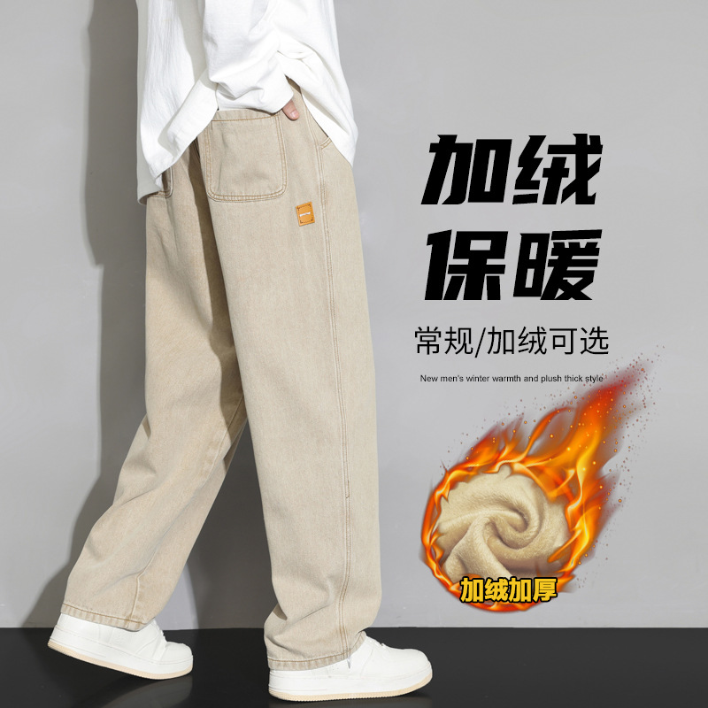 2025 가을 겨울 미국 레트로 스타일 청바지 남성용 스트레이트 루즈 와이드 레그 바닥 길이 바지 청소년용 플리스 안감 캐주얼 바지스토어 가기