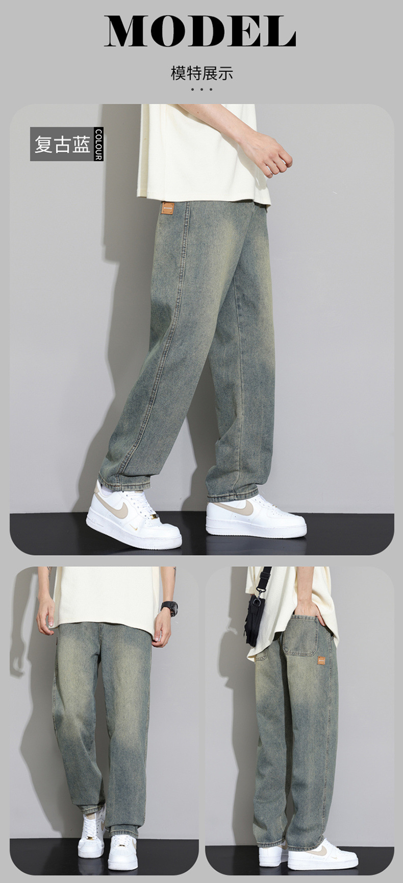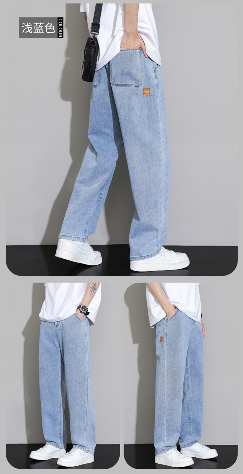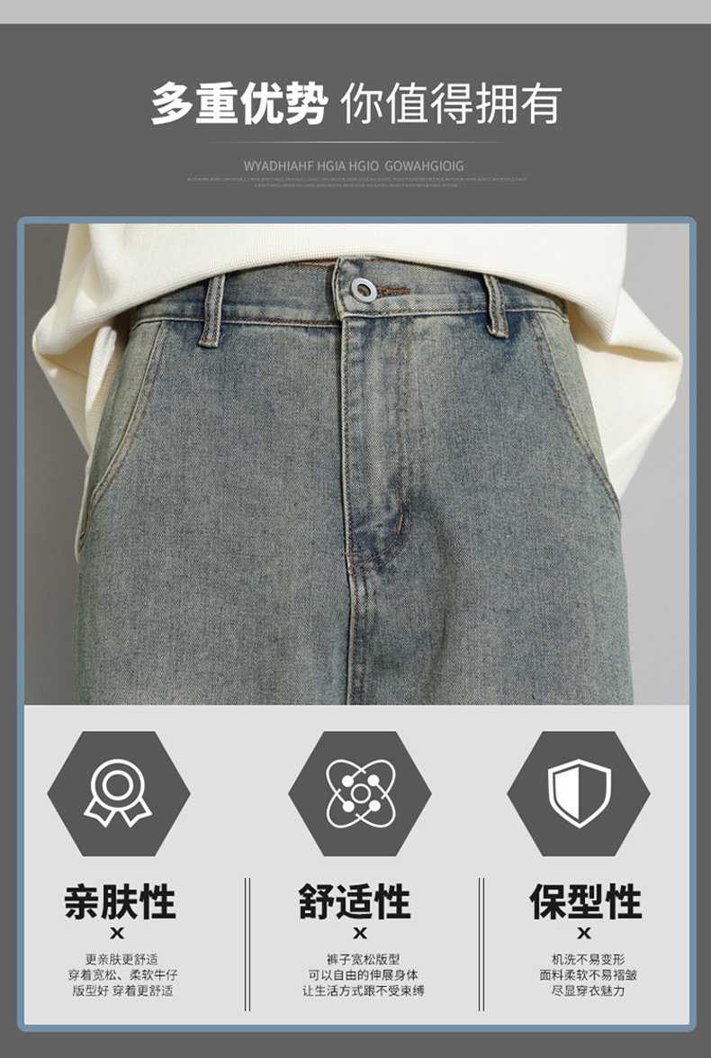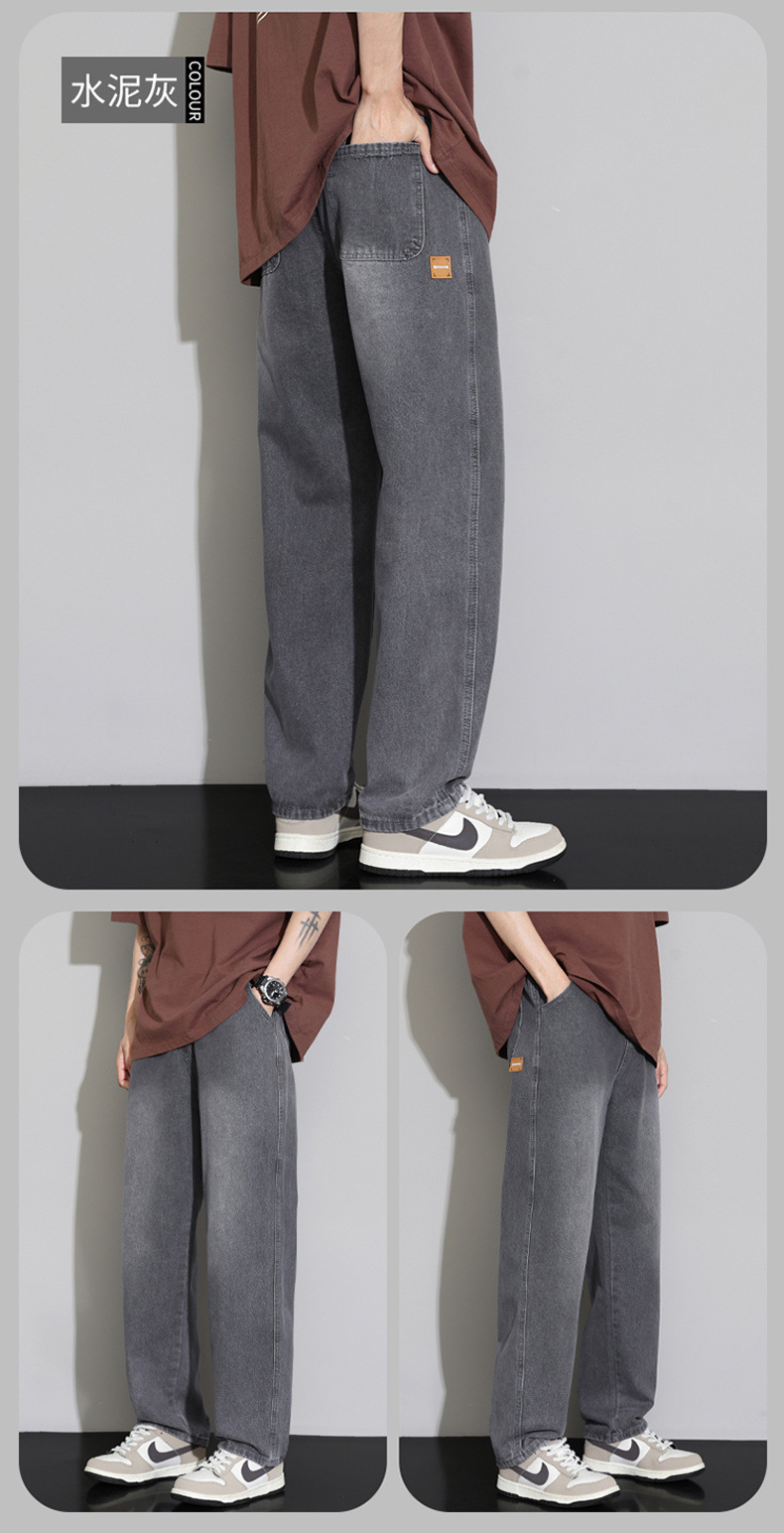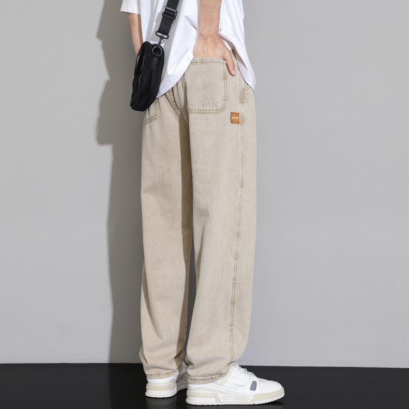 2025 가을 겨울 미국 레트로 스타일 청바지 남성용 스트레이트 루즈 와이드 레그 바닥 길이 바지 청소년용 플리스 안감 캐주얼 바지스토어 가기