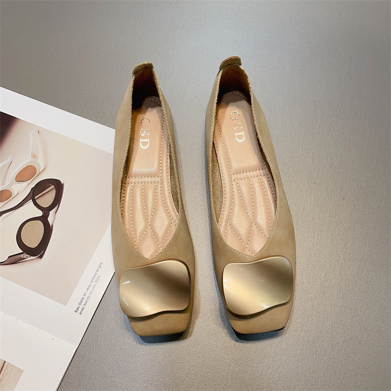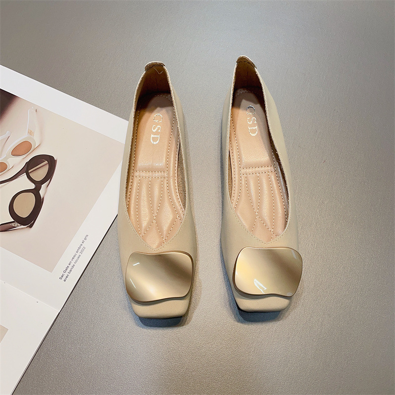 얕은 입 신발 여성용 한국식 봄 신형 금속 버클 편안한 1 피트 스퀘어 발가락 플랫 슈즈 소프트 단독 신발스토어 가기