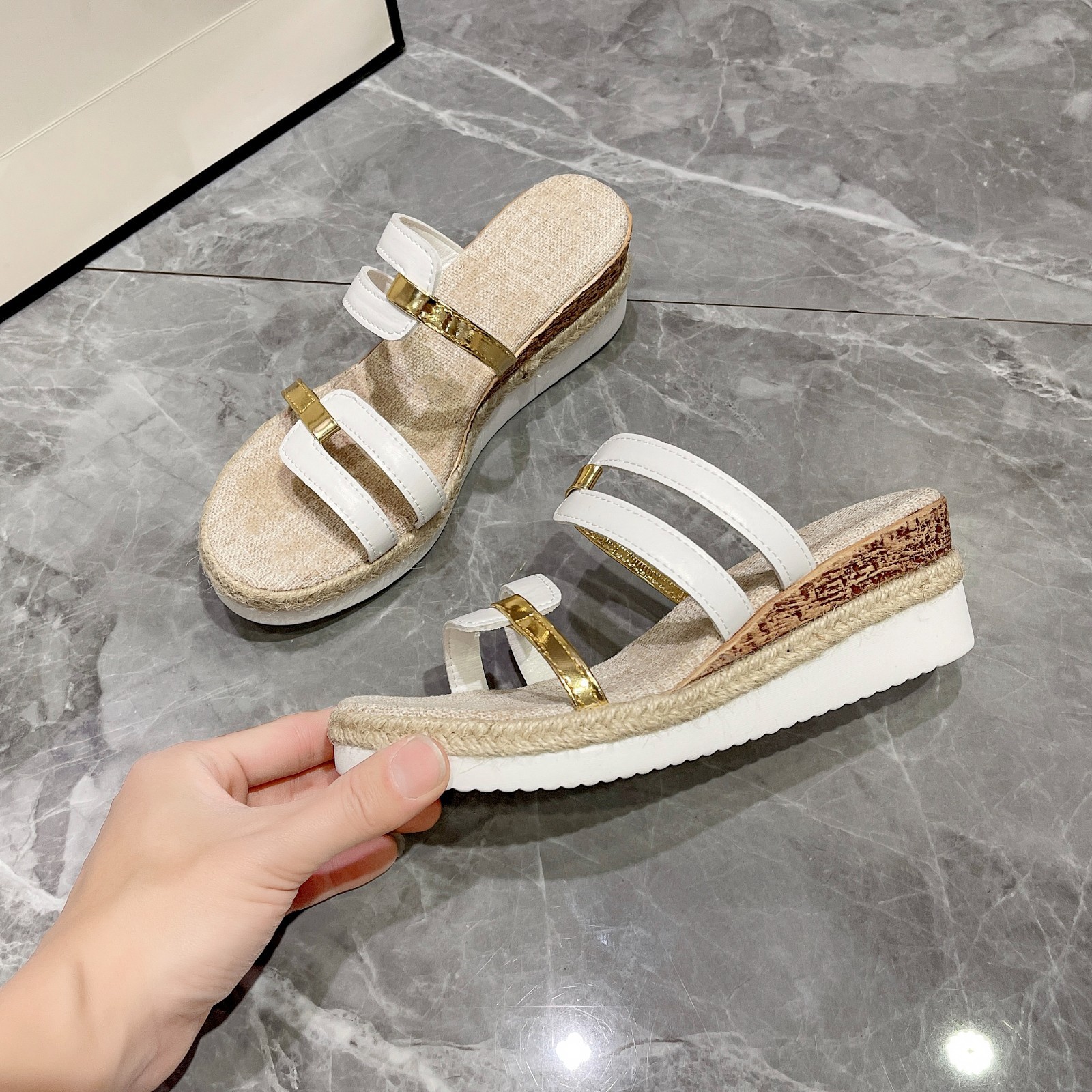 2024 새로운 대외 무역 플러스 사이즈 여성 샌들과 슬리퍼 여름 유럽과 미국의 올 매치 웨지 힐 로마 신발 여성의 두꺼운 바닥 느슨한 신발
