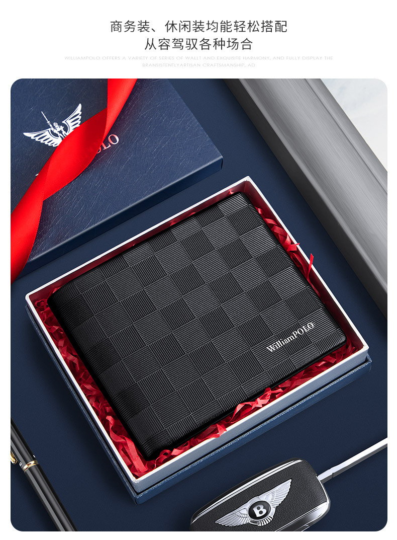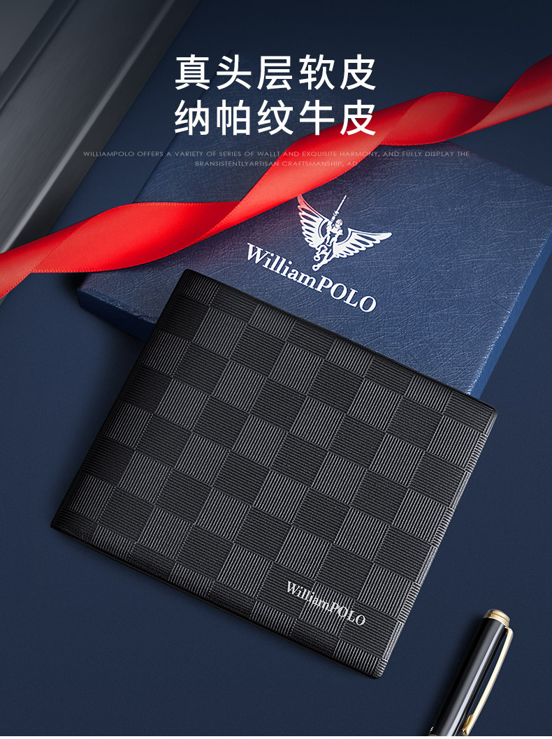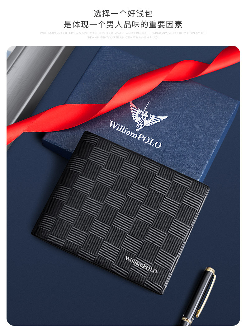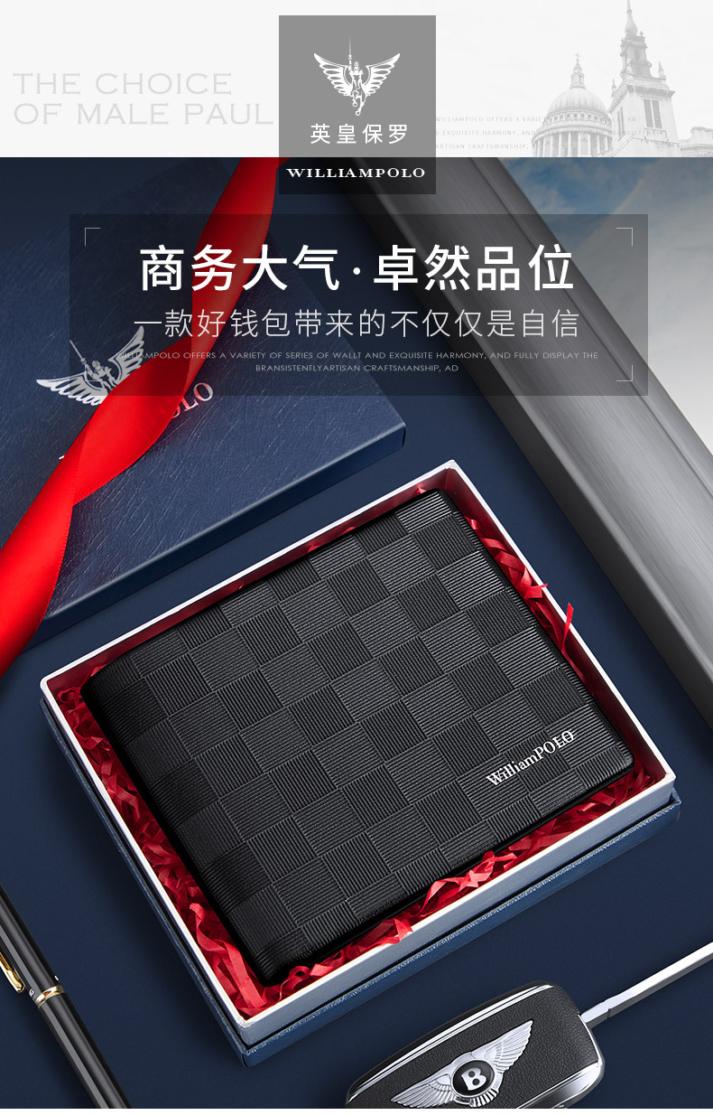 Emperor Paul 2024 신제품 남성용 짧은 지갑 남성용 정품 가죽 지갑 지갑 격자 무늬 고급 도매 배송