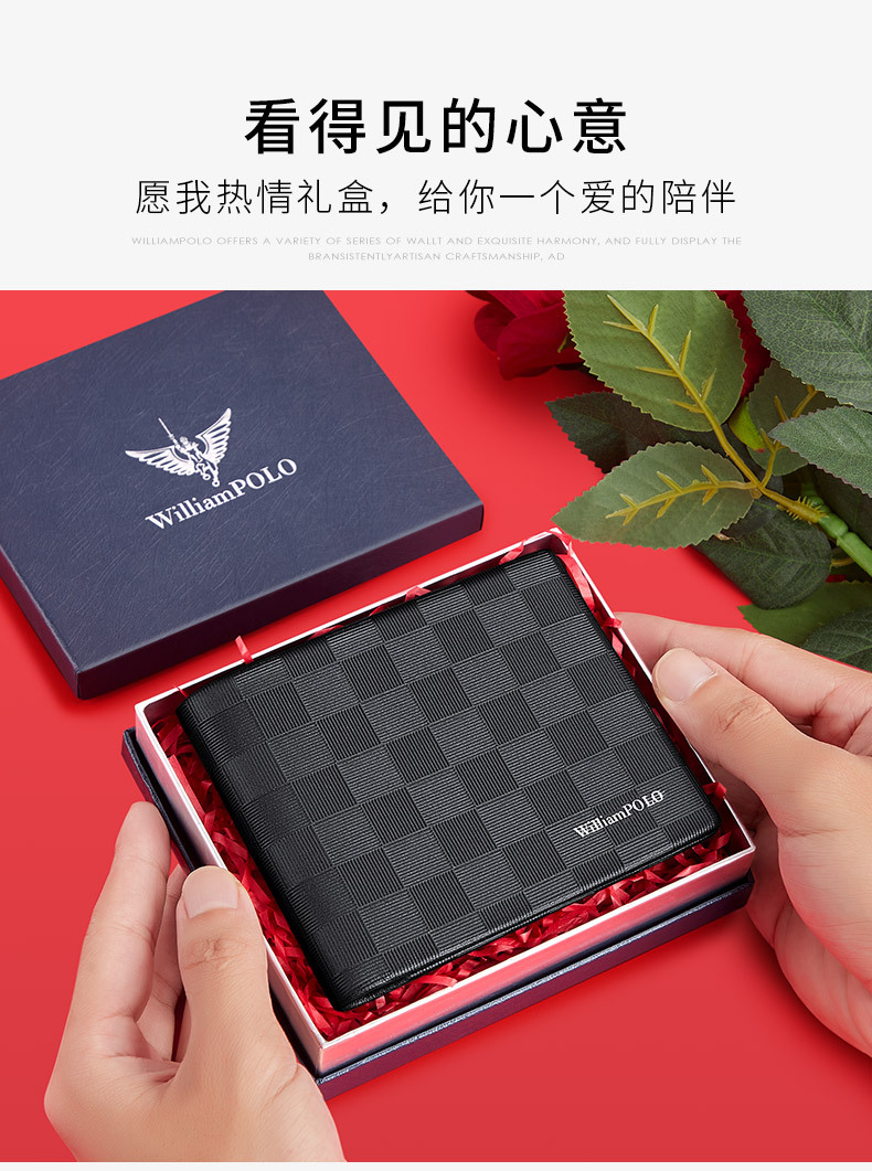 Emperor Paul 2024 신제품 남성용 짧은 지갑 남성용 정품 가죽 지갑 지갑 격자 무늬 고급 도매 배송스토어 가기