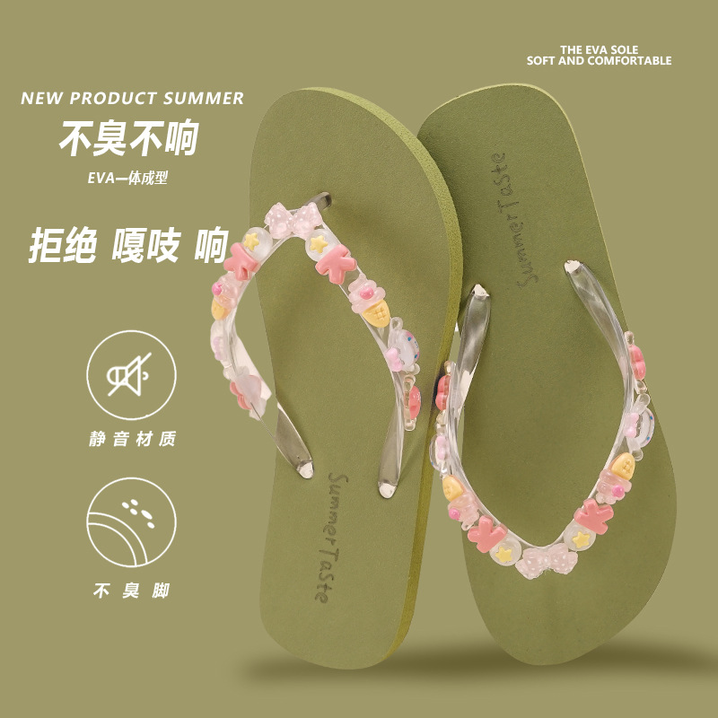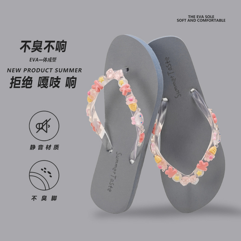 DIY 플립 플롭 여성 여름 실내 비치 신발 해변 외관 착용 배설물 느낌 귀여운 목욕 투명 꽃 미끄럼 방지