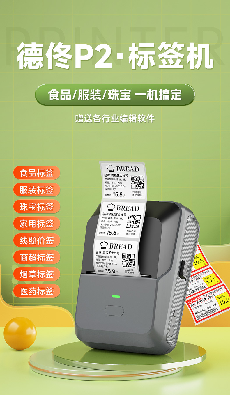 디통 P518 식품 라벨 프린터 의류 태그 열 접착 종이 휴대용 작은 가정용 라벨링 기계