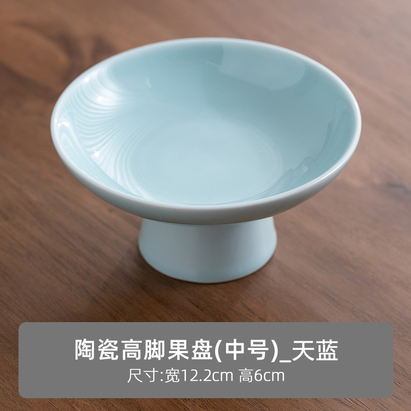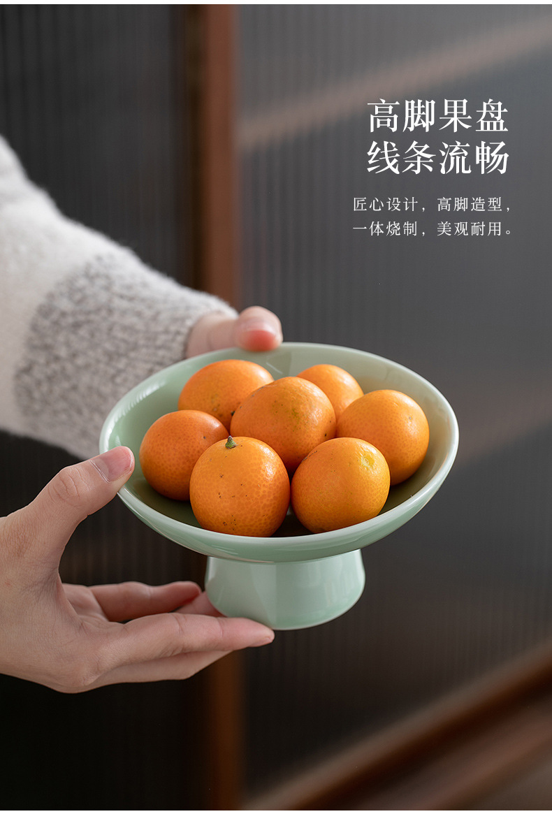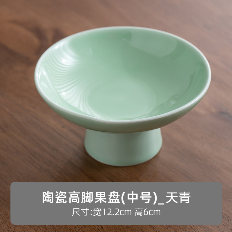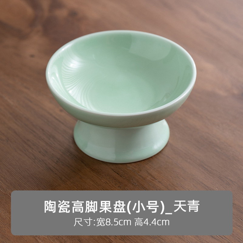 빈티지 상쾌한 접시 중국 스타일의 세라믹 높은 발 청자 과일 플레이트 가정용 거실 식탁 간식베이스 너트 과일 플레이트스토어 가기