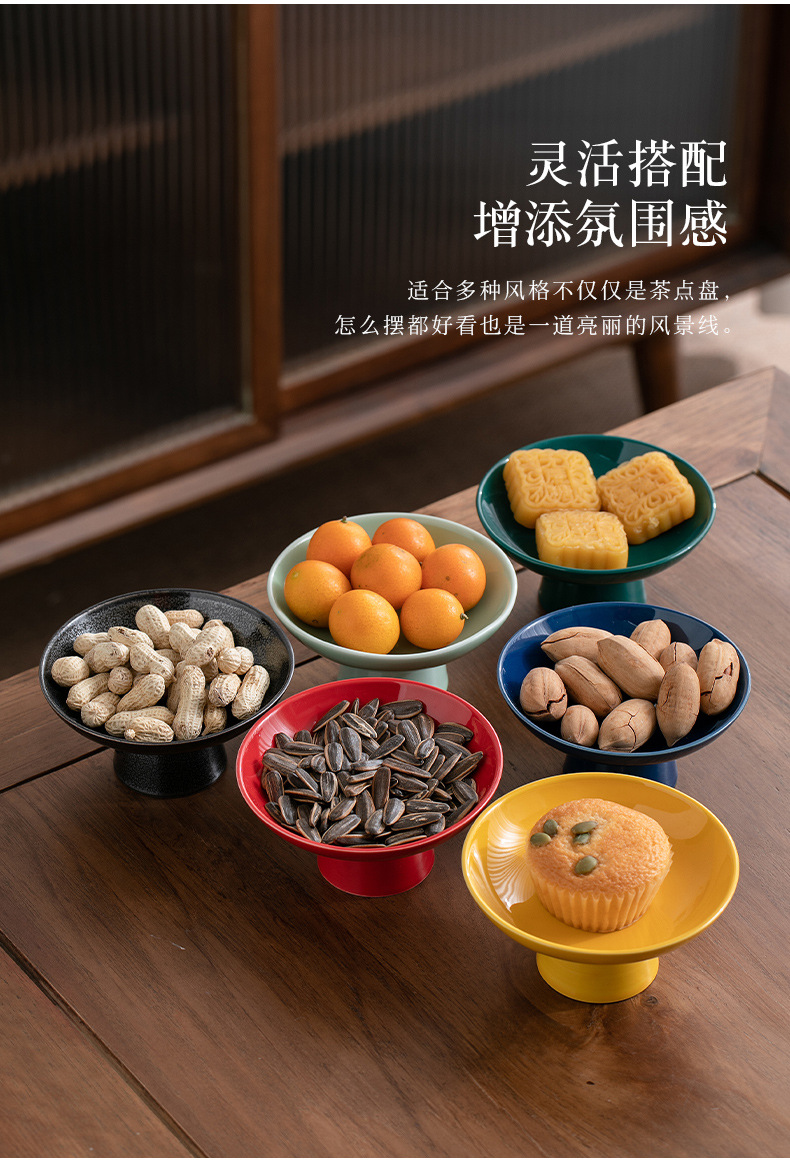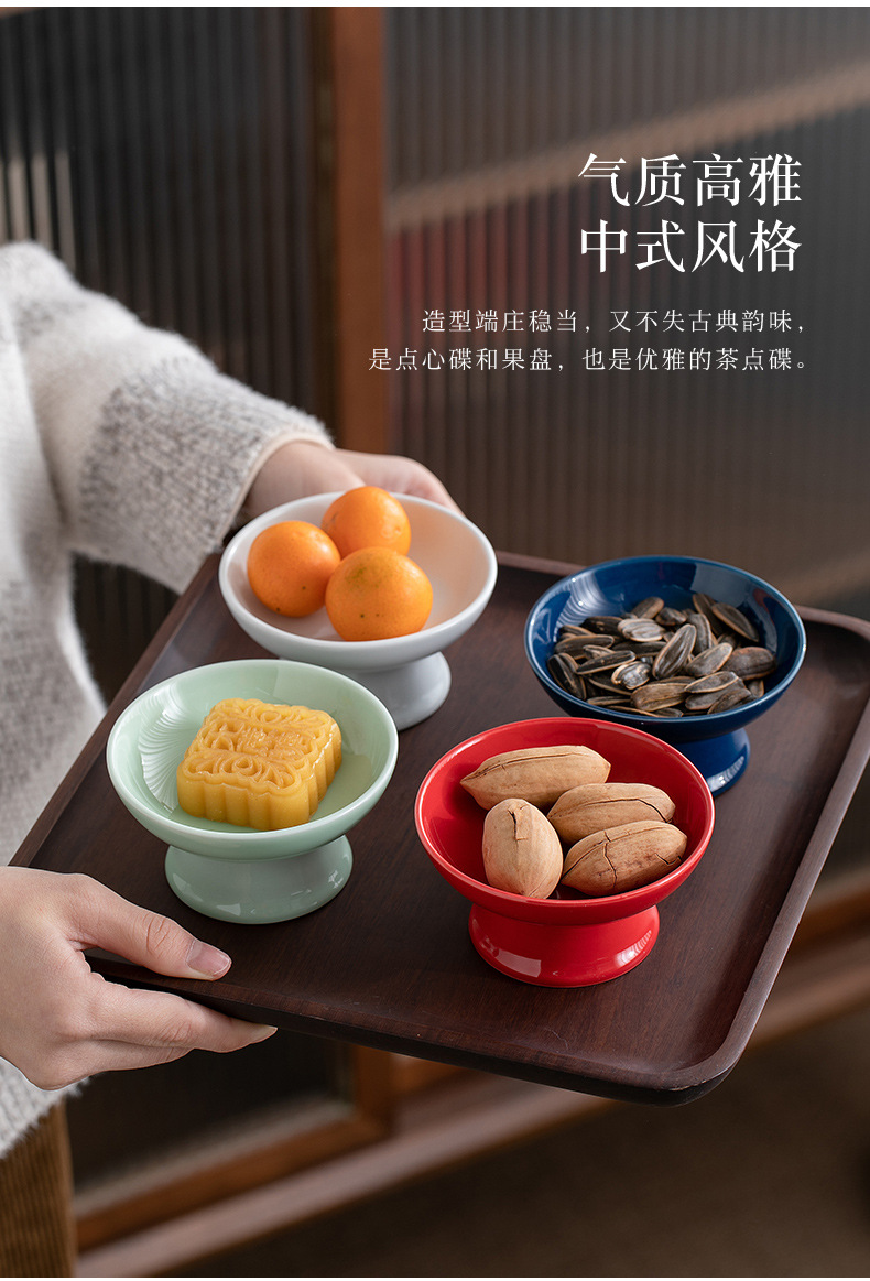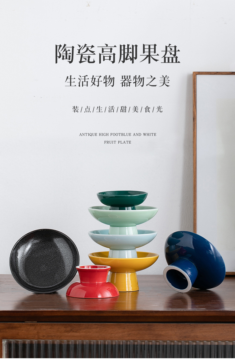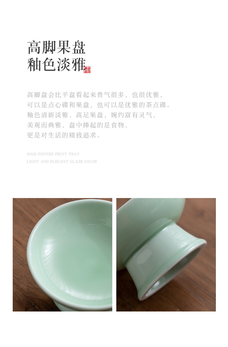 빈티지 상쾌한 접시 중국 스타일의 세라믹 높은 발 청자 과일 플레이트 가정용 거실 식탁 간식베이스 너트 과일 플레이트스토어 가기
