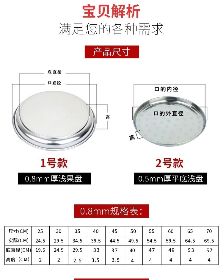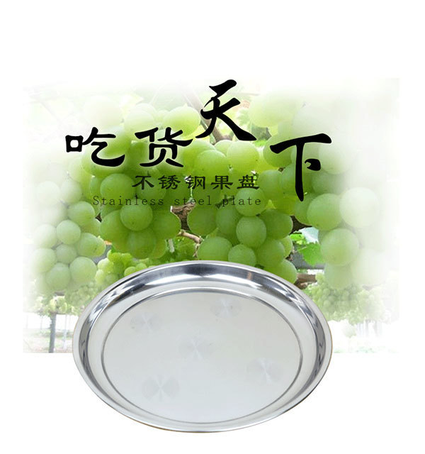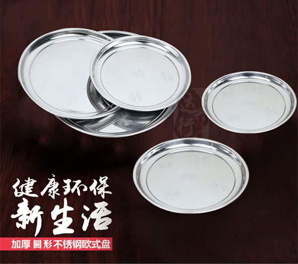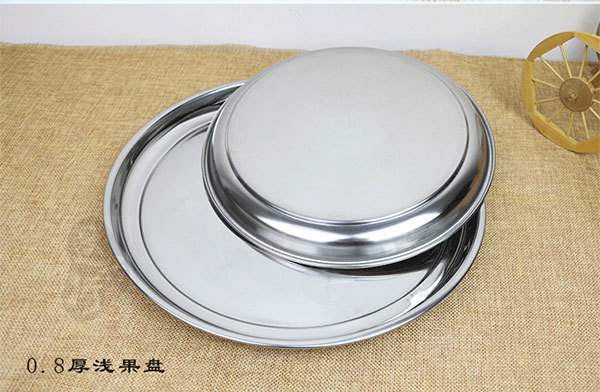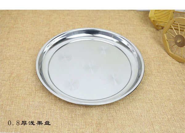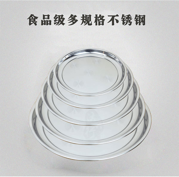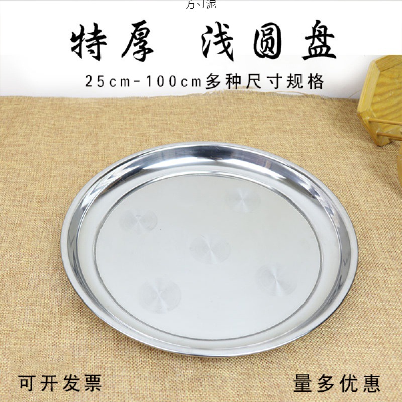 스테인레스 스틸 플레이트 라운드 대형 디스크 얕은 플레이트 플랫 플레이트 바베큐 플레이트 접시 플랫 하단 접시 과일 플레이트 대형 트레이 섀시스토어 가기