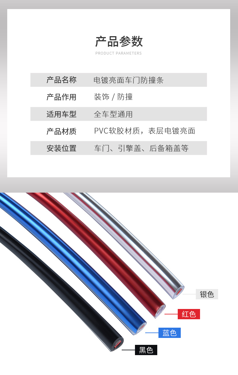 자동차 도어 전기 도금 충돌 방지 스트립 5 미터 10 미터 로딩 도어 스크래치 방지 밝은 표면 보호 스티커 도어 트림
