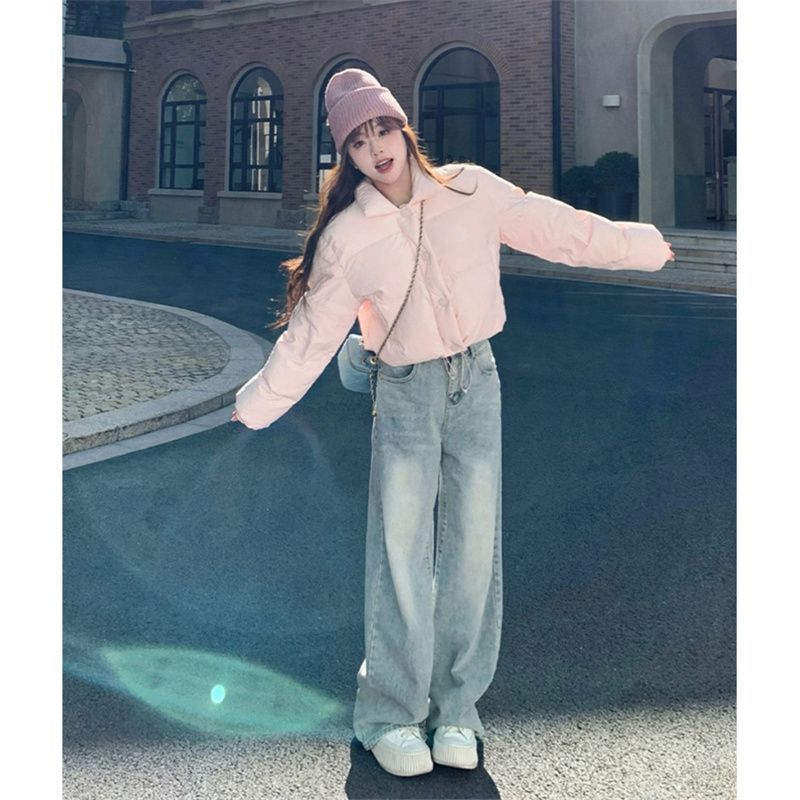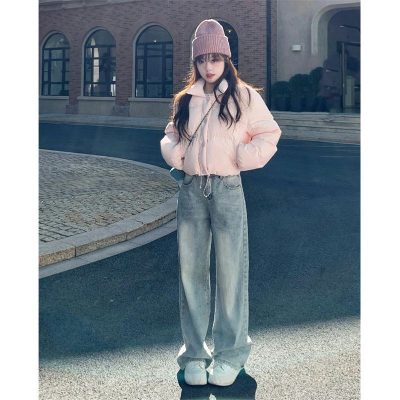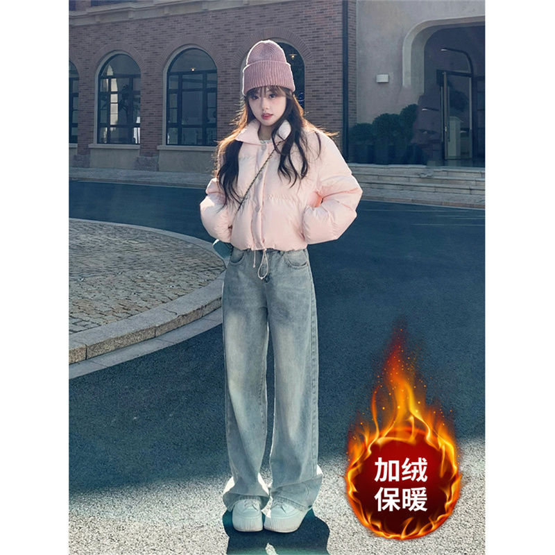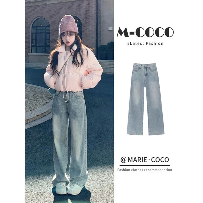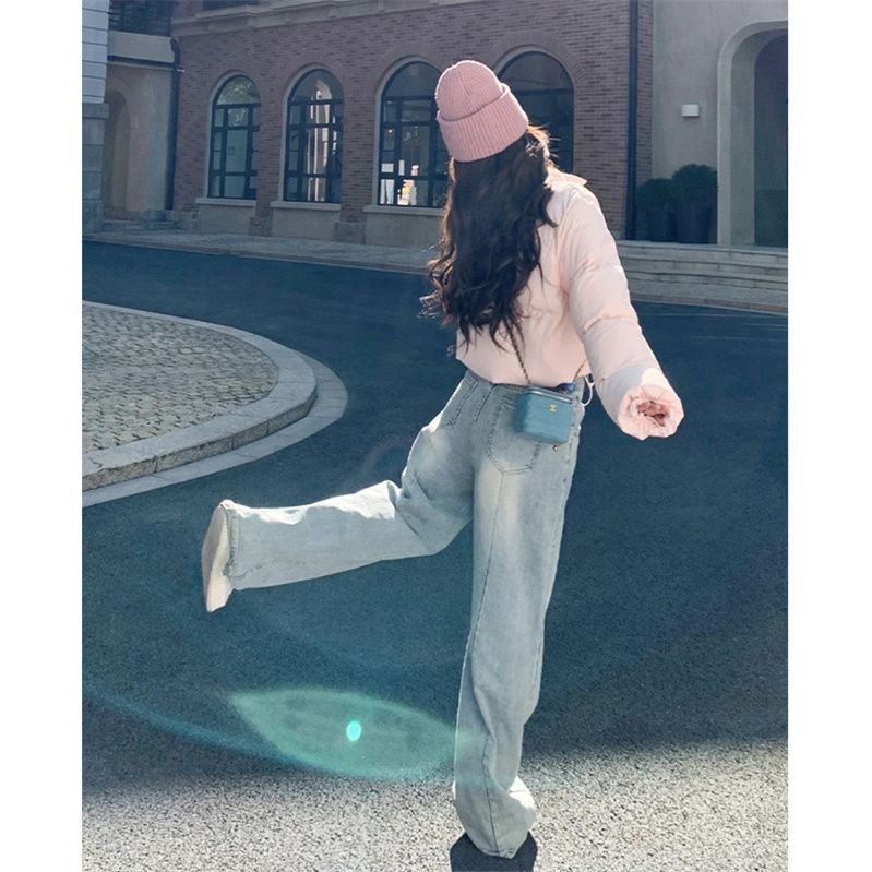 플러스 사이즈 빈티지 넓은 다리 청바지 여성의 2023 새로운 가을과 겨울 높은 허리 작은 라이트 블루 스트레이트 바지스토어 가기