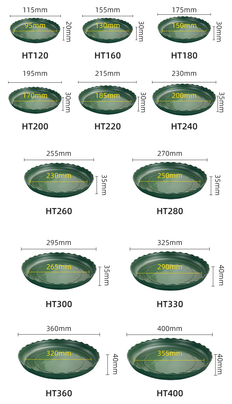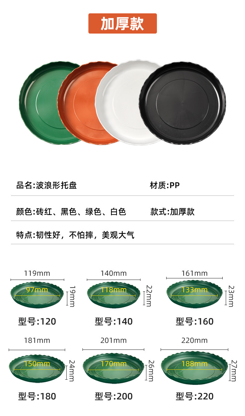 검은 플라스틱 플라워 플레이트 두꺼운 바닥 플레이트 다육 식물 화분 베이스 도매 라운드 플라워 트레이 웨이브 갤런 꽃 냄비 트레이스토어 가기