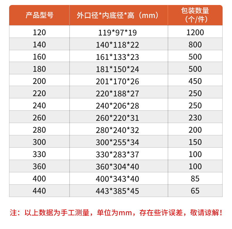 • 180(외경 181*내바닥경 150*높이 24mm) 개당 500개