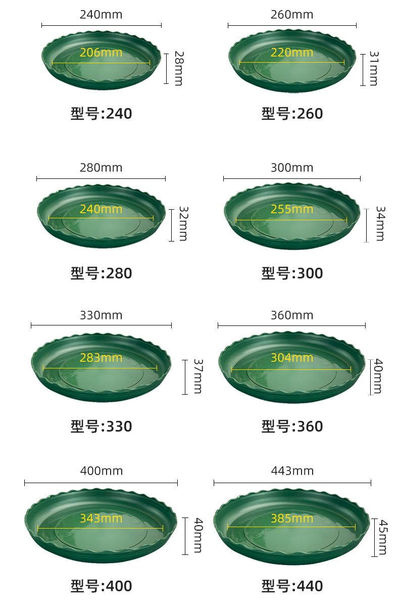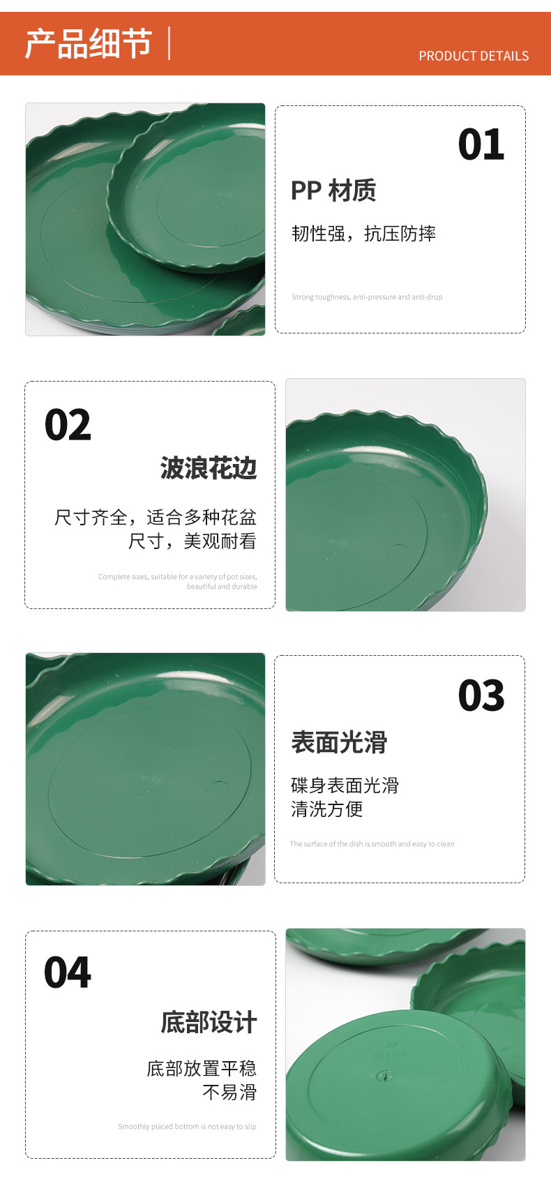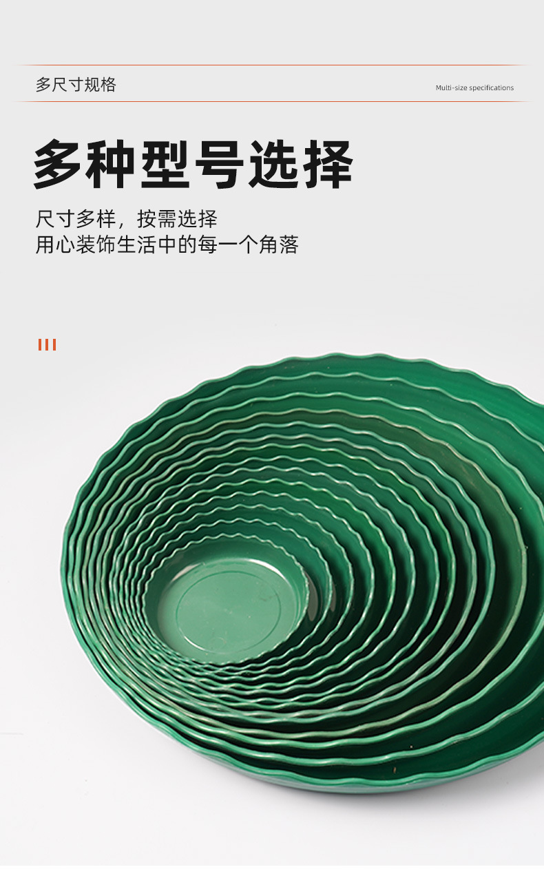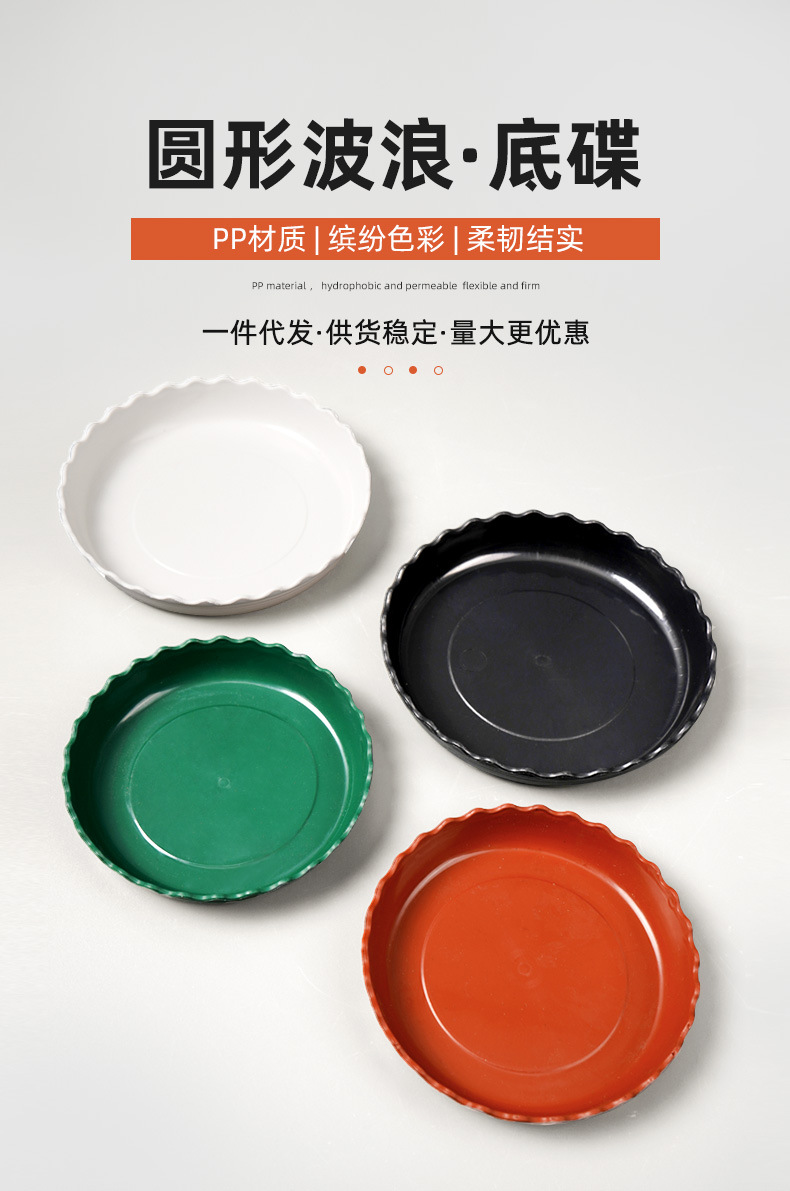 검은 플라스틱 플라워 플레이트 두꺼운 바닥 플레이트 다육 식물 화분 베이스 도매 라운드 플라워 트레이 웨이브 갤런 꽃 냄비 트레이