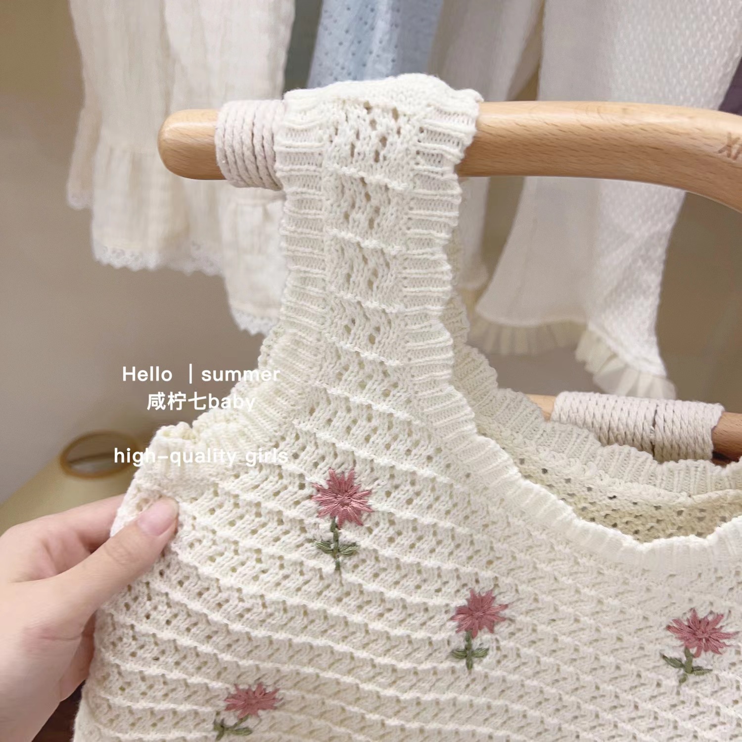 소녀 여름 세트 2024 새로운 도착 소녀 유행 세련된 니트 조끼 어린이 캐주얼 반바지 투피스 세트