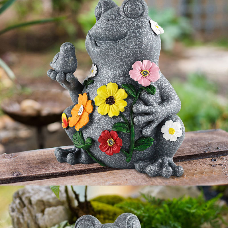 국경 간 새로운 수지 태양 개구리 장식품 야외 목가적 정원 안뜰 동물 조각 장식품 도매