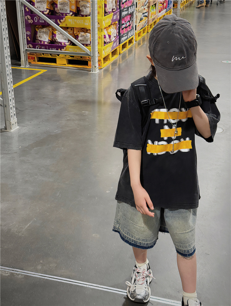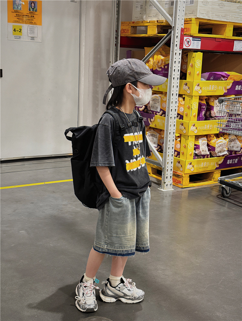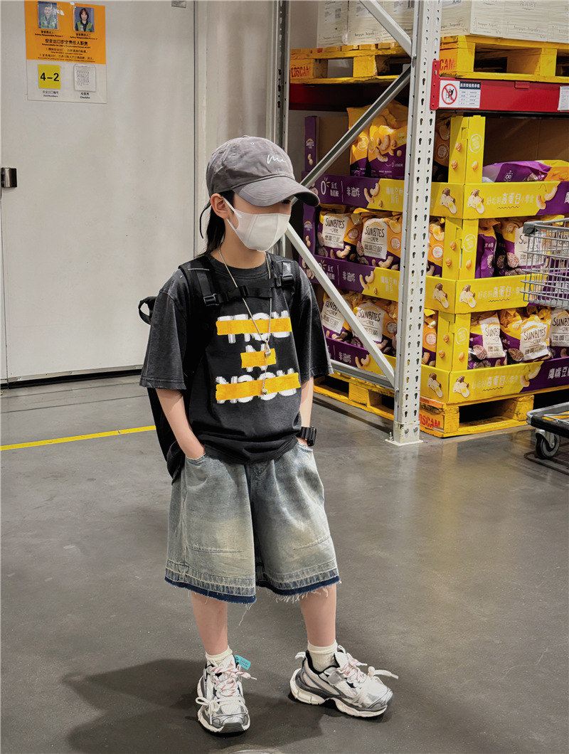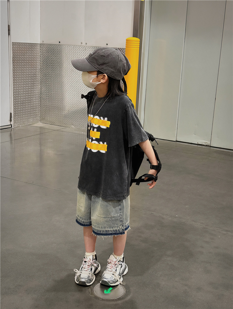 Baoduo 아동복 남학생 랩 데님 반바지 2024 새로운 도착 중 아이 바지 여름 얇은 바지 어린이 바지스토어 가기