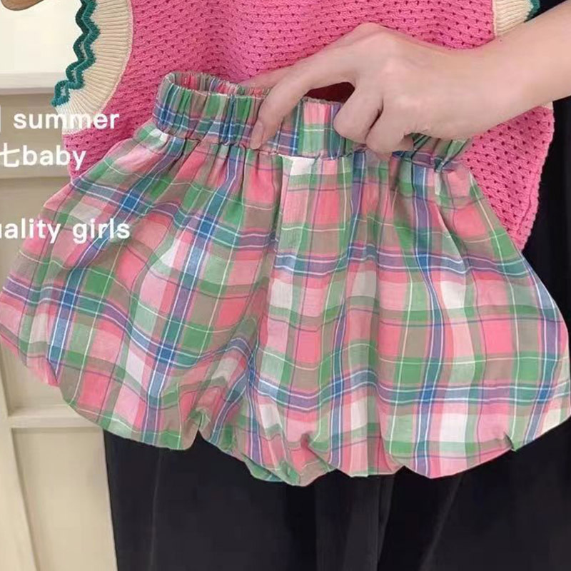 한국 여성 아동복 여름 유행 서양식 유행 아기 니트 조끼 격자 무늬 버드 반바지 투피스 세트