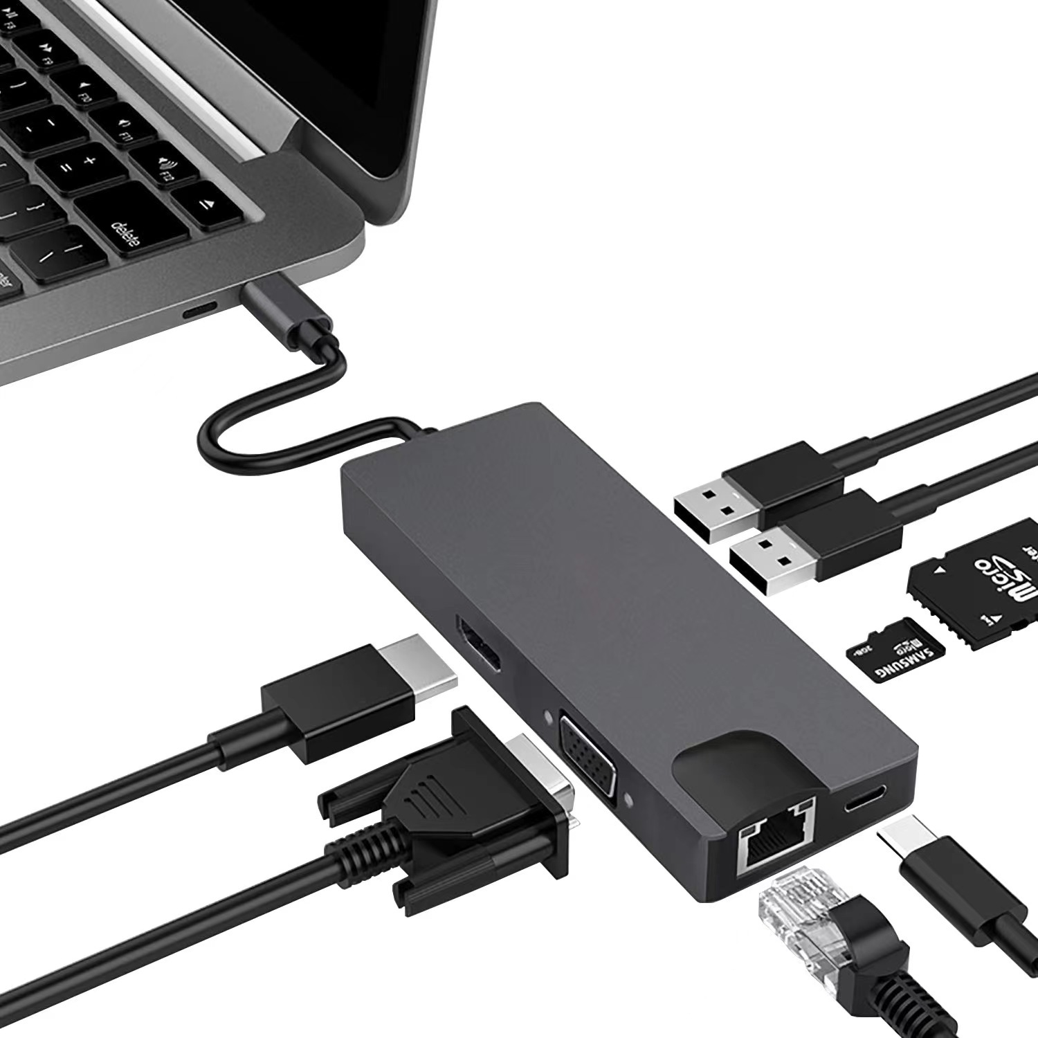 국경 간 재고 8 대 1 도킹 스테이션 다기능 허브 카드 리더 유형-c 네트워크 포트 usb 멀티 포트 도킹 스테이션