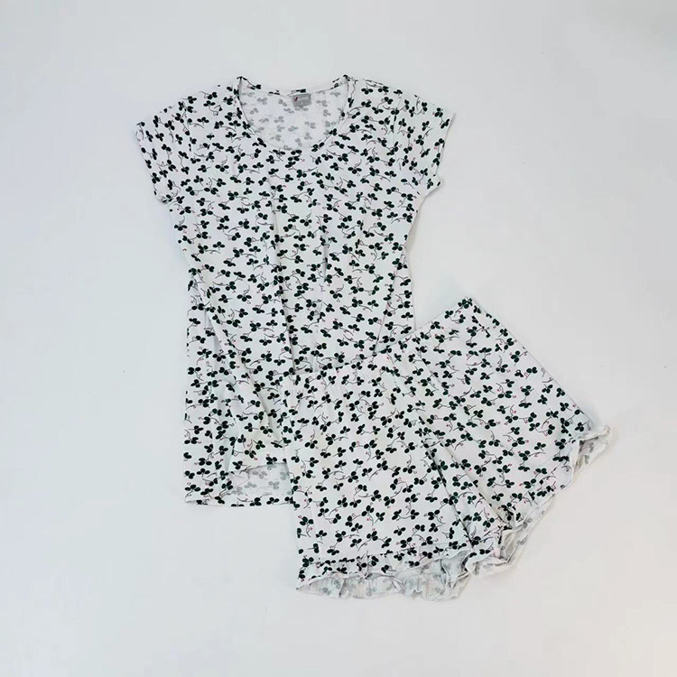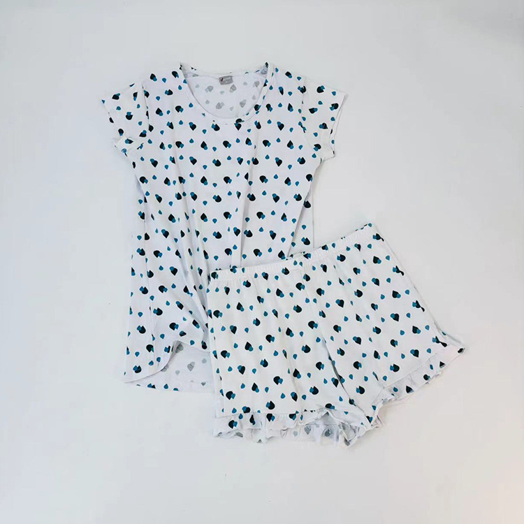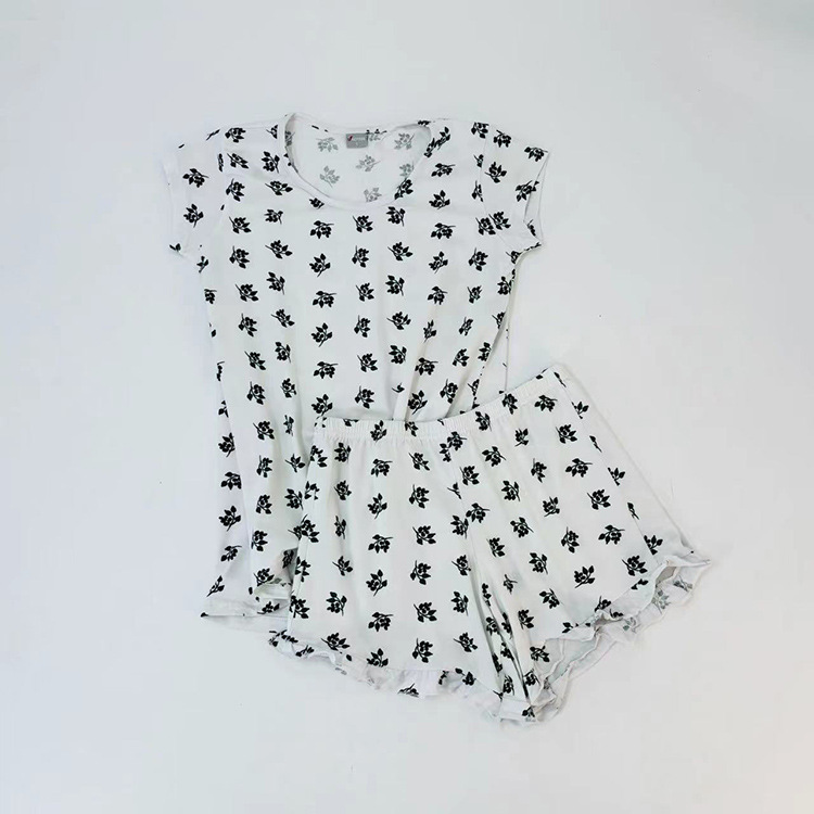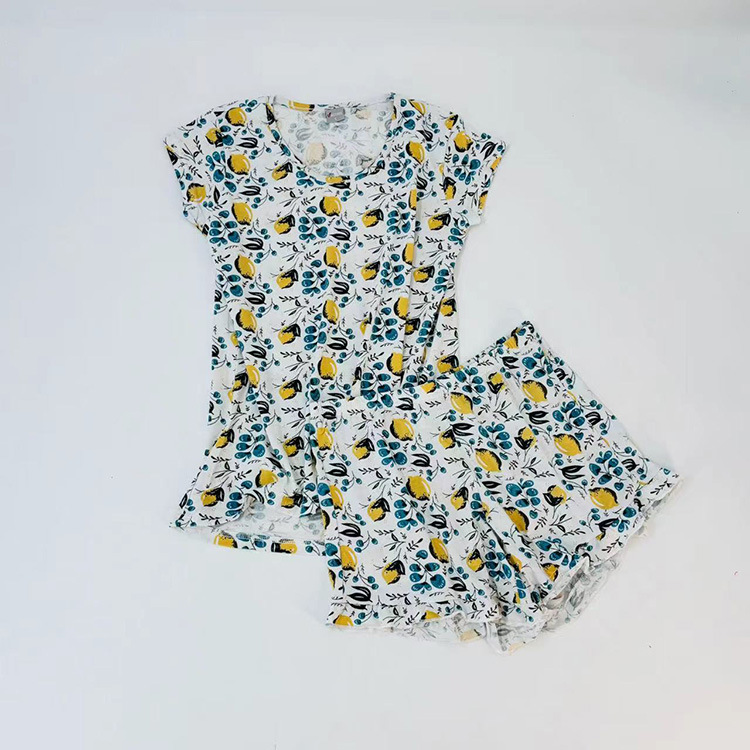 유럽과 미국의 대외 무역 싱글 여성 여름 면화 홈 의류 2 피스 세트 여성 반팔 상단 반바지 홈 파자마 세트