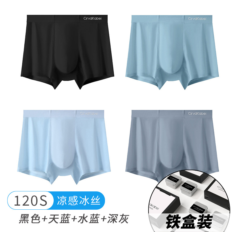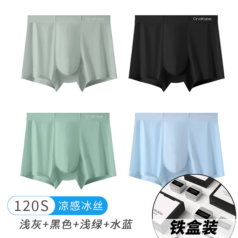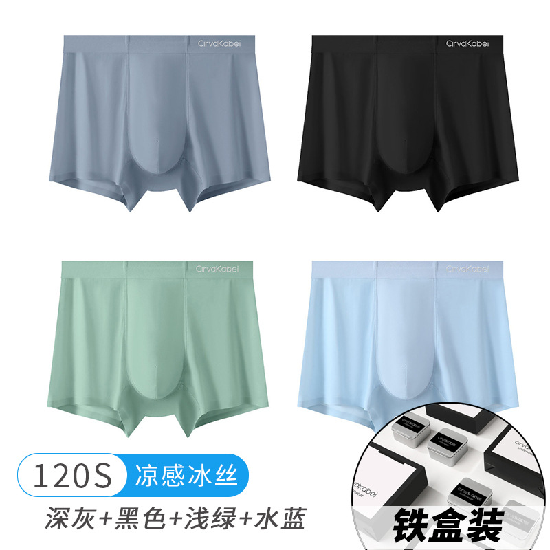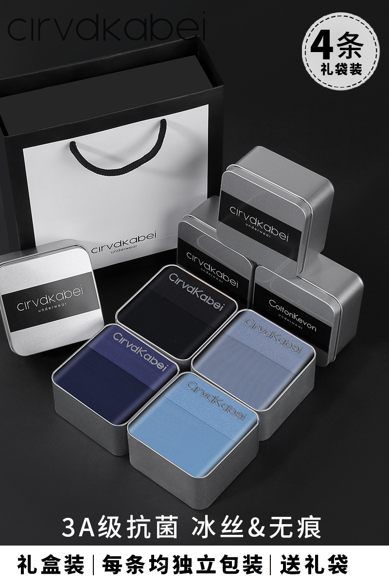 무료 배송 철 박스 남성용 속옷 남성용 아이스 실크 트레이스 항균 크로트치 얇은 복서 복서 반바지 머리 선물 박스스토어 가기