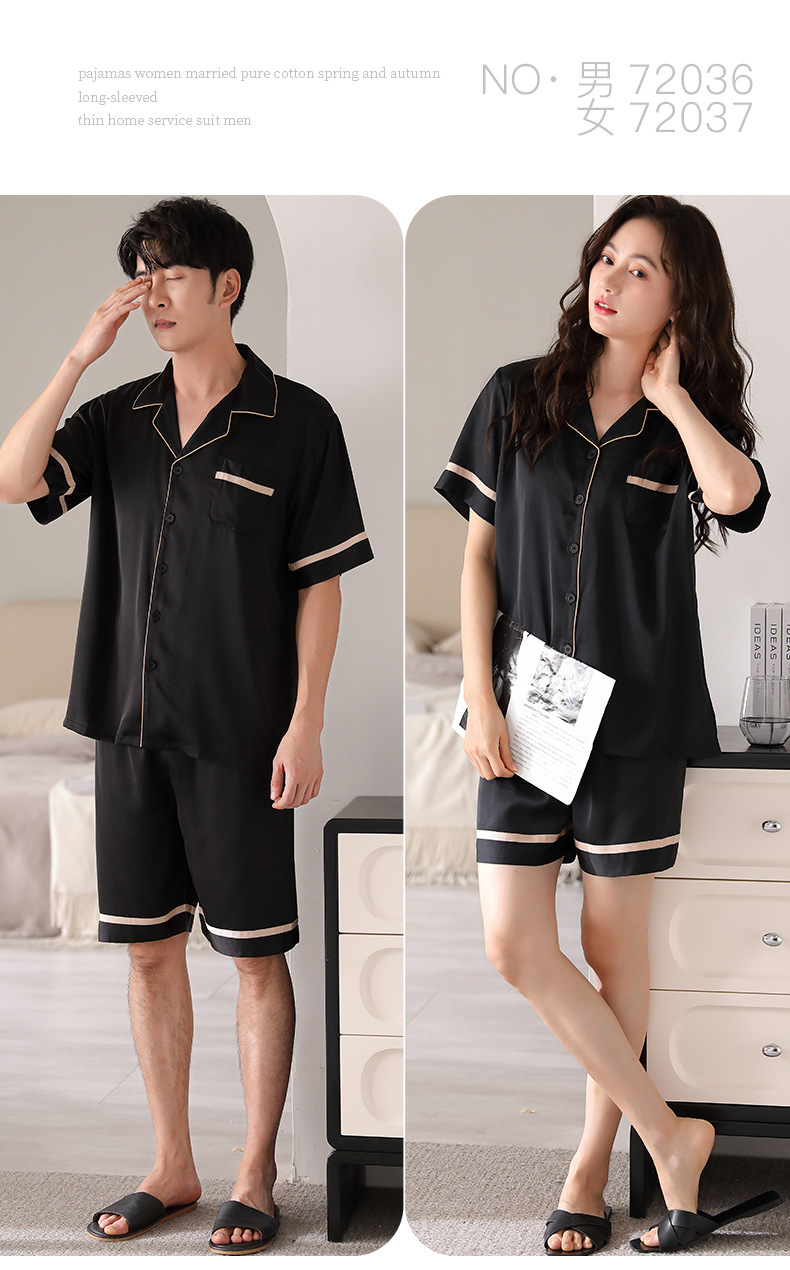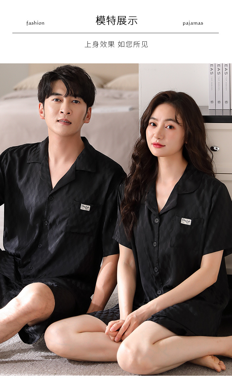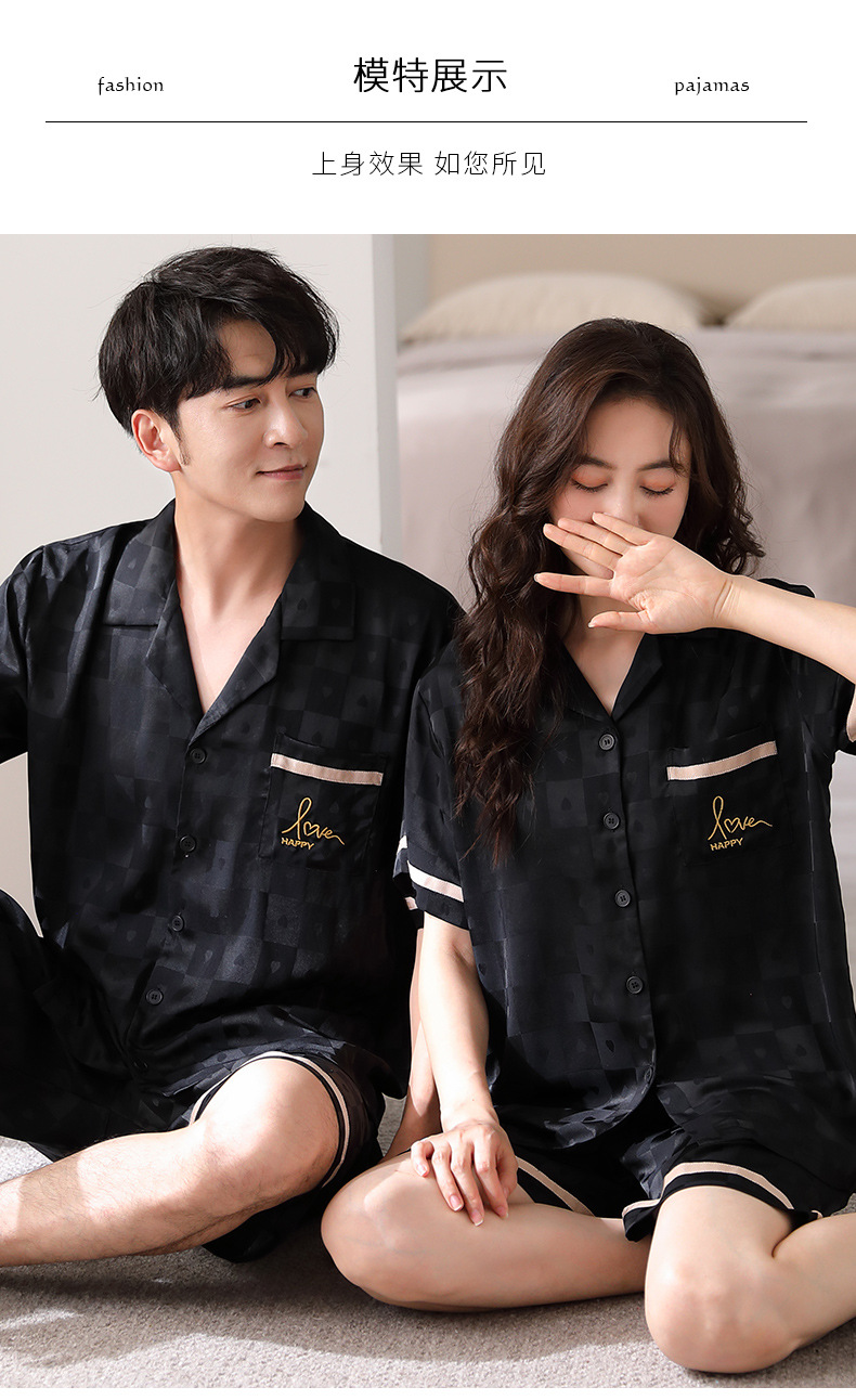 커플 아이스 실크 파자마 여름 여자 쿨 얇은 짧은 소매 반바지 가슴 패드 실크 남자 홈 의류 세트