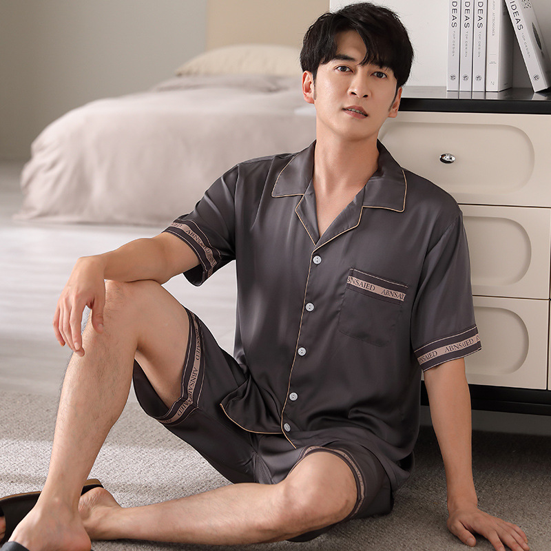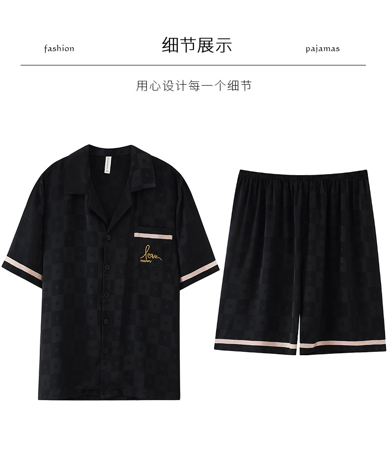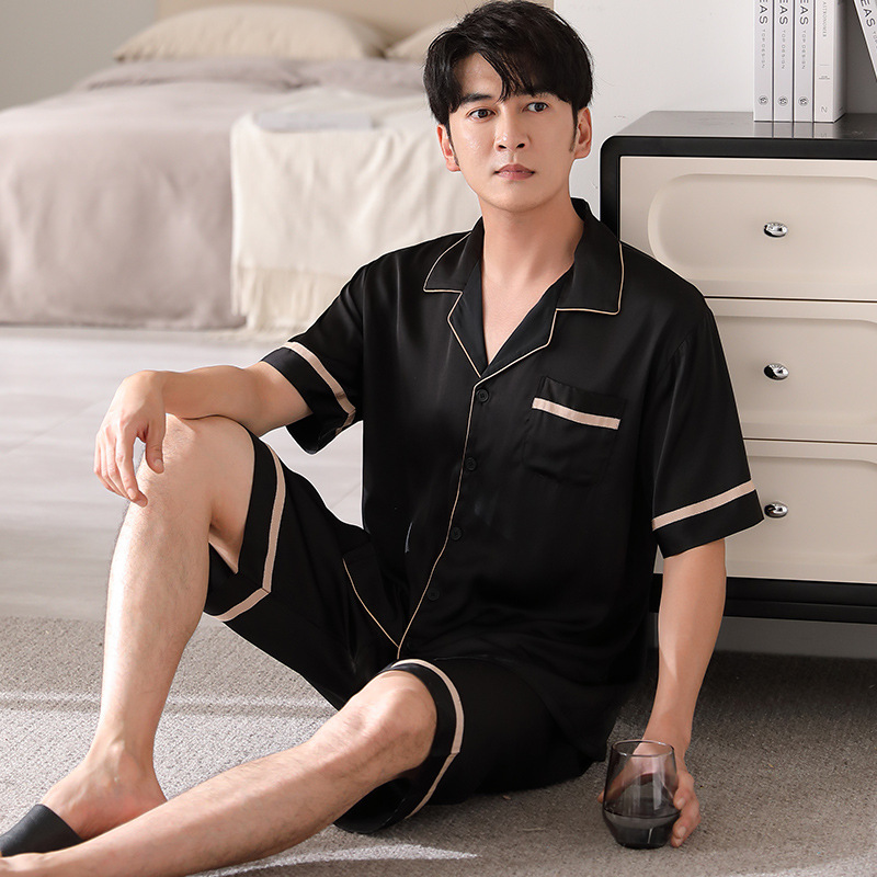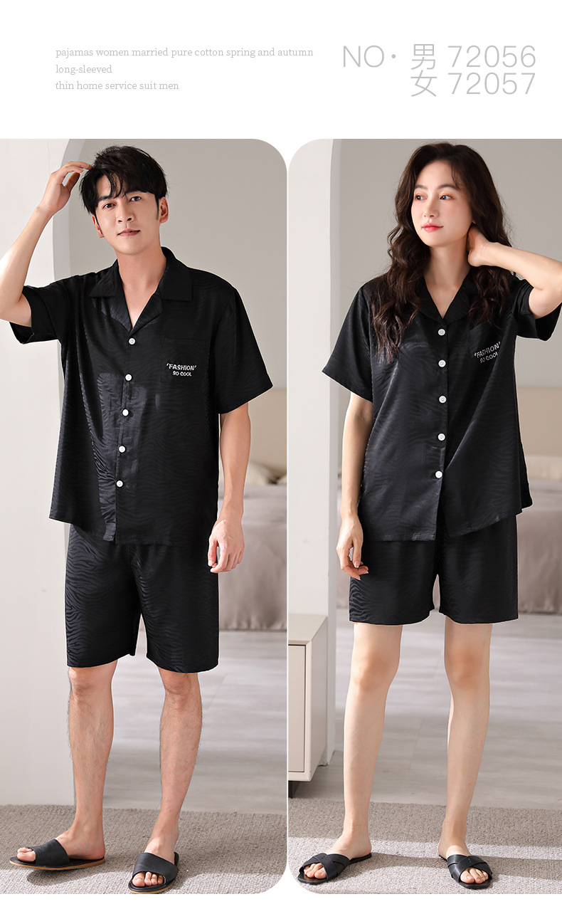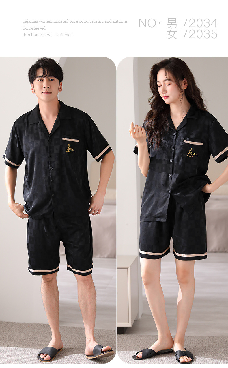 커플 아이스 실크 파자마 여름 여자 쿨 얇은 짧은 소매 반바지 가슴 패드 실크 남자 홈 의류 세트