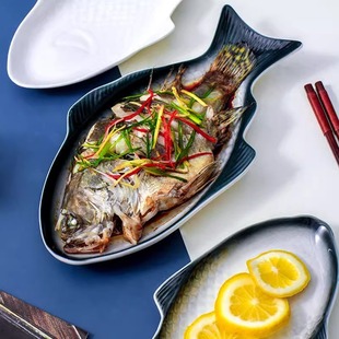 餐厅创意陶瓷鱼型盘 个性商用网红装蒸鱼盘 日式高档酒店餐具批发