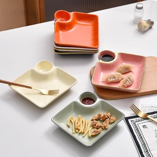日式简约饺子盘 家用陶瓷彩釉菜盘 小吃盘炸薯条水饺方形分格盘子