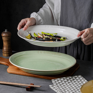 日式简约家用牛排餐盘陶瓷餐具 圆形创意ins风窑变大盘子网红菜盘