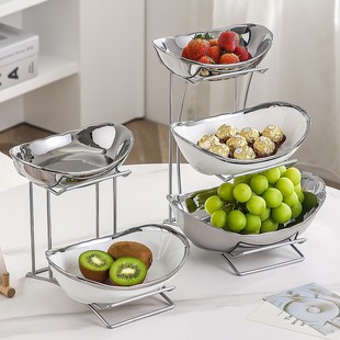 元宝多层陶瓷水果盘 家用餐桌茶几糖果零食盘 超值美容院点心果盘