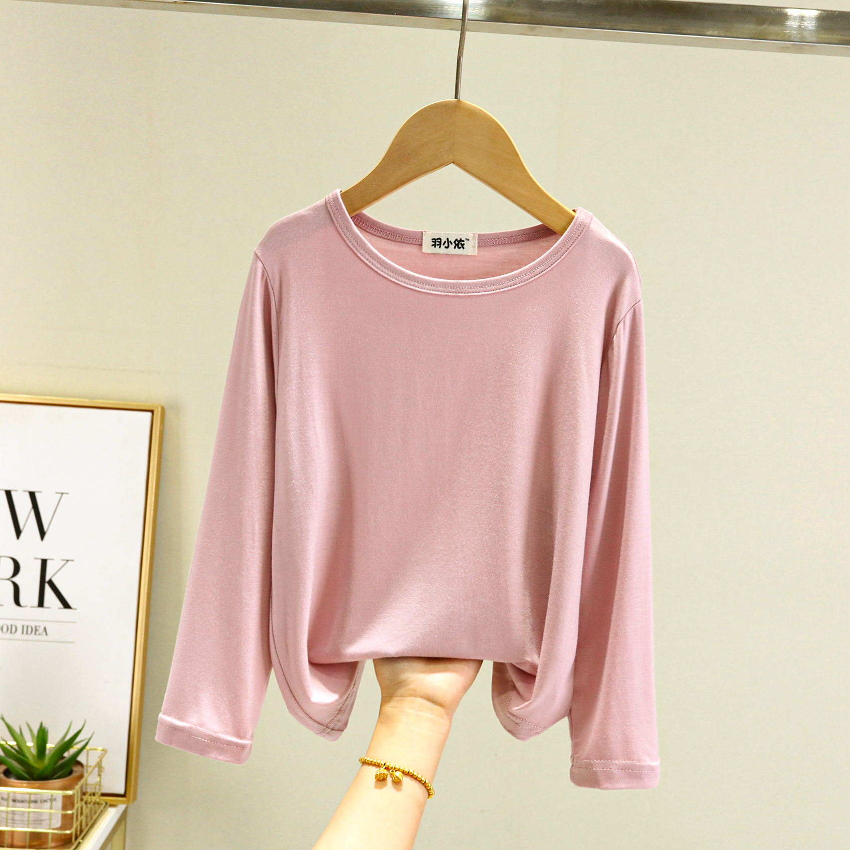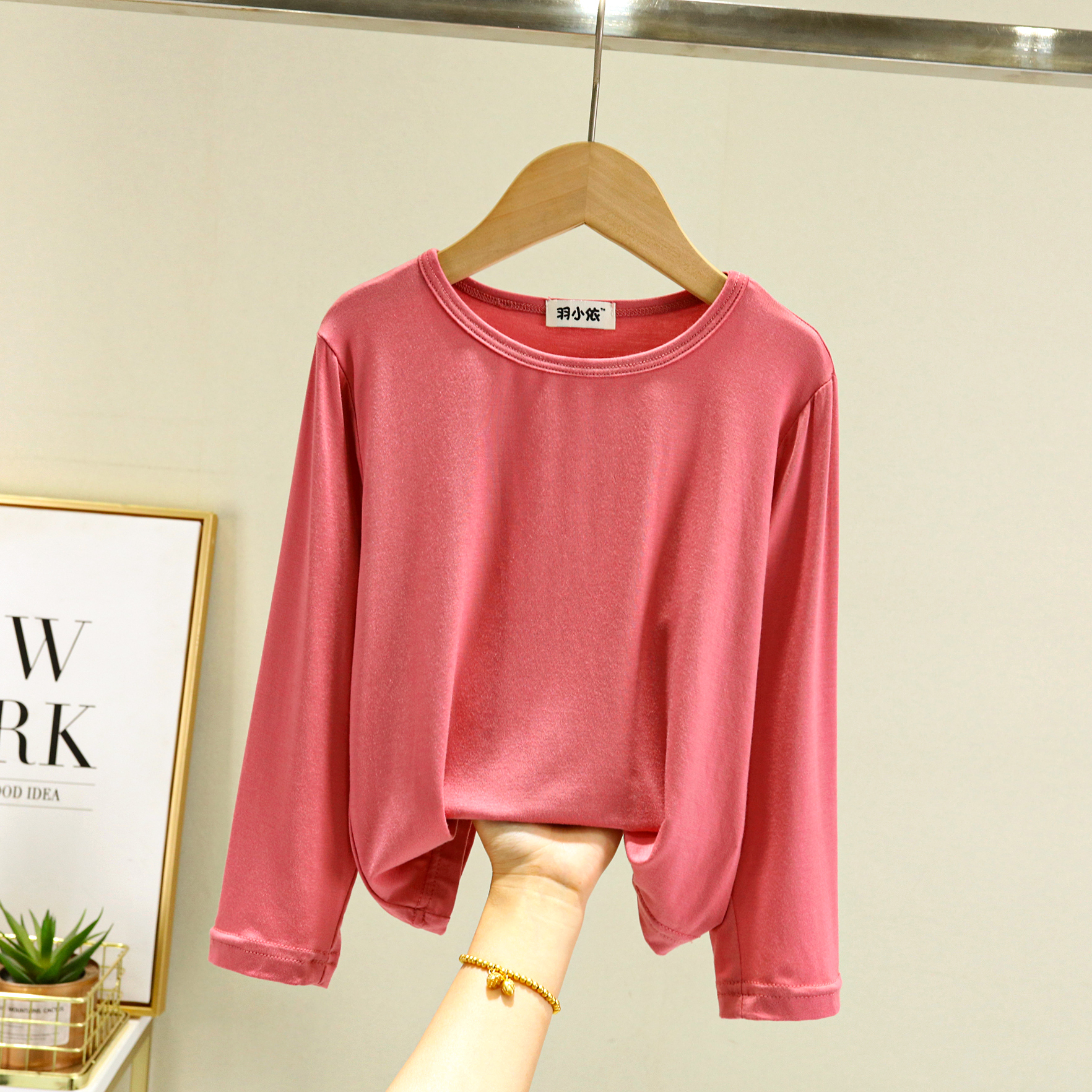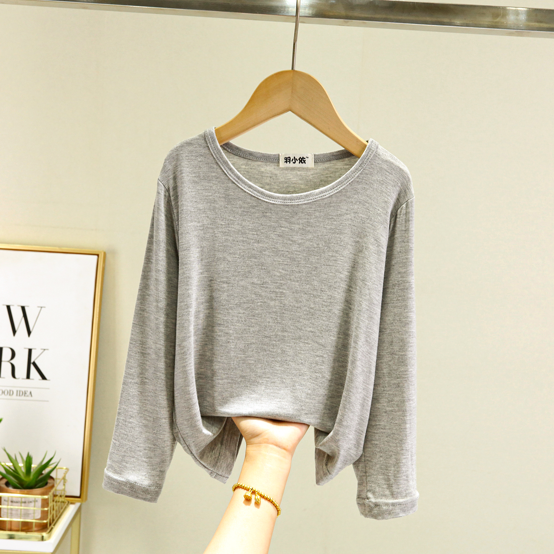 봄과 여름 어린이 모달 티셔츠 탑 루즈 보이즈 라운드 넥 올매치 베이스 셔츠 소녀 긴 소매 얇은 가을 옷스토어 가기