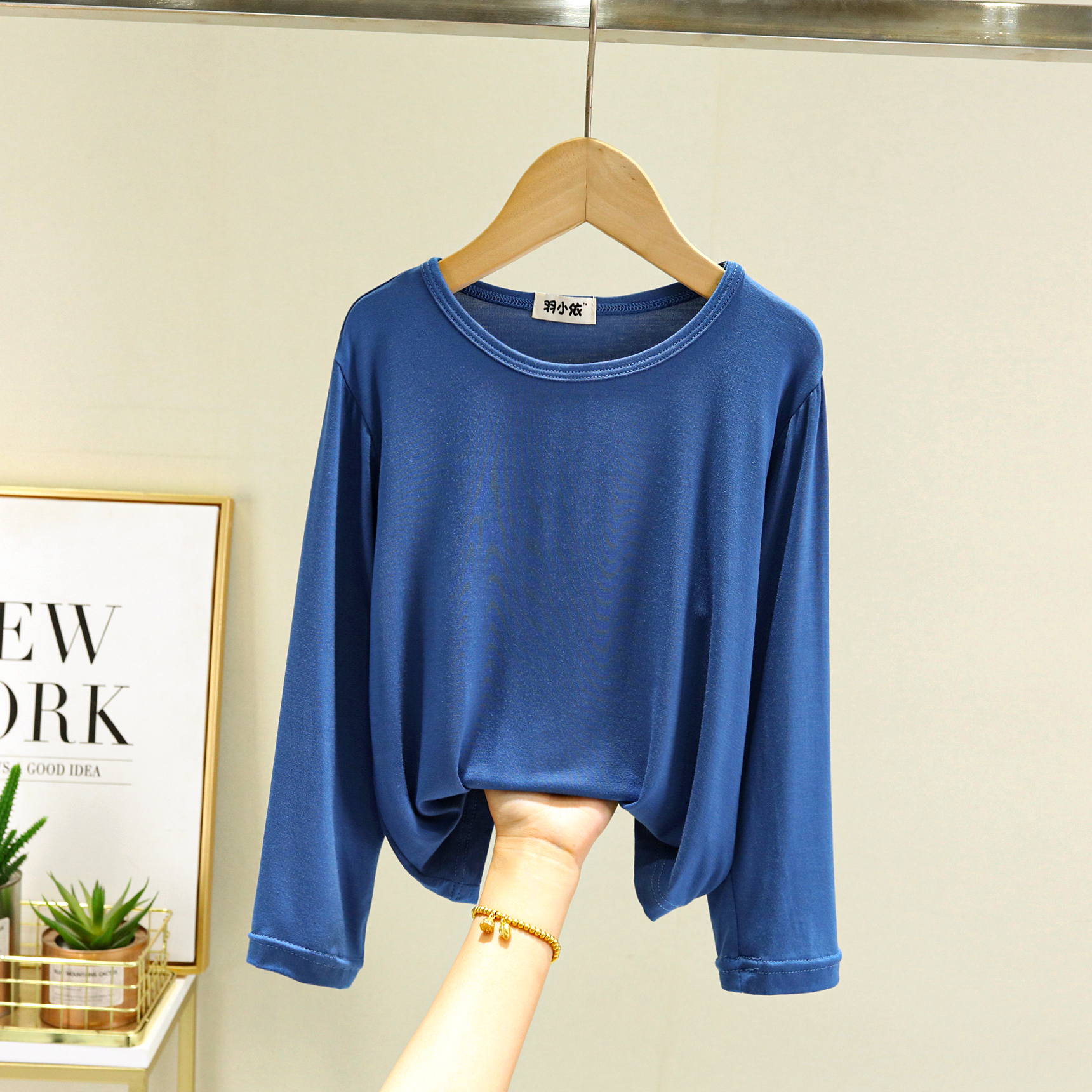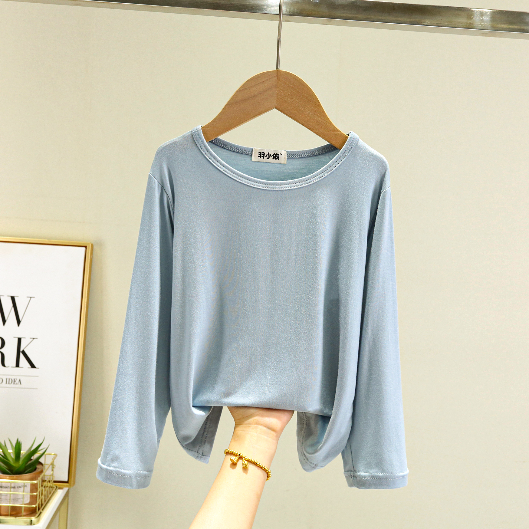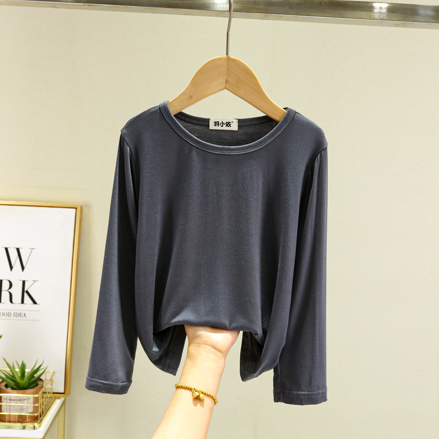 봄과 여름 어린이 모달 티셔츠 탑 루즈 보이즈 라운드 넥 올매치 베이스 셔츠 소녀 긴 소매 얇은 가을 옷스토어 가기
