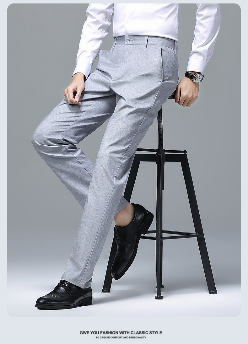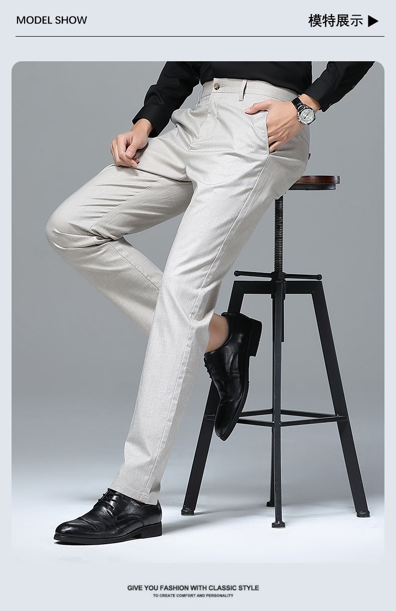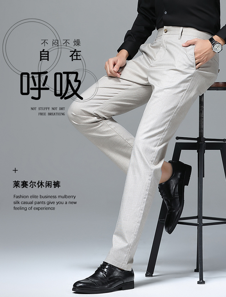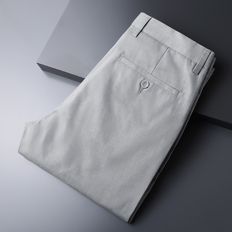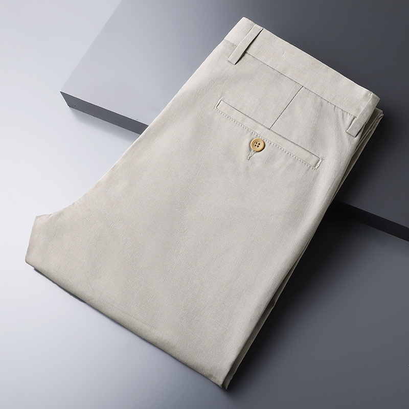 가벼운 럭셔리 텐셀 리넨 남성 비즈니스 캐주얼 바지 봄과 여름 새로운 젊고 중년의 스트레이트 롱 바지 남자 세트 바지스토어 가기