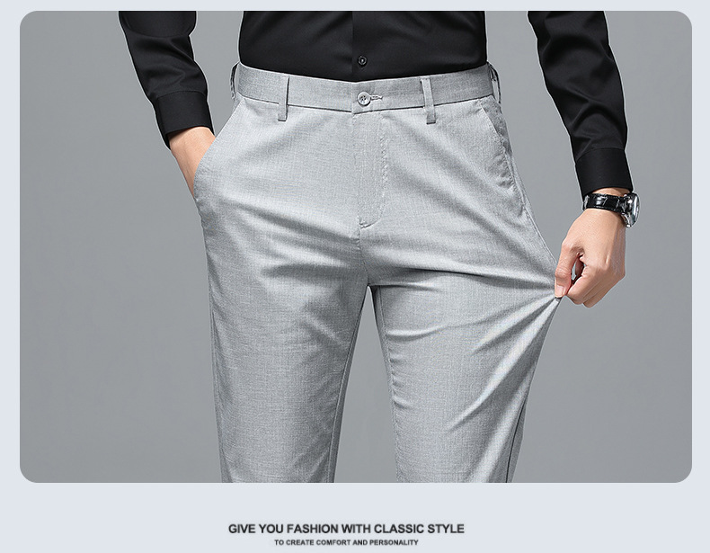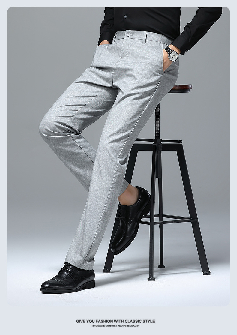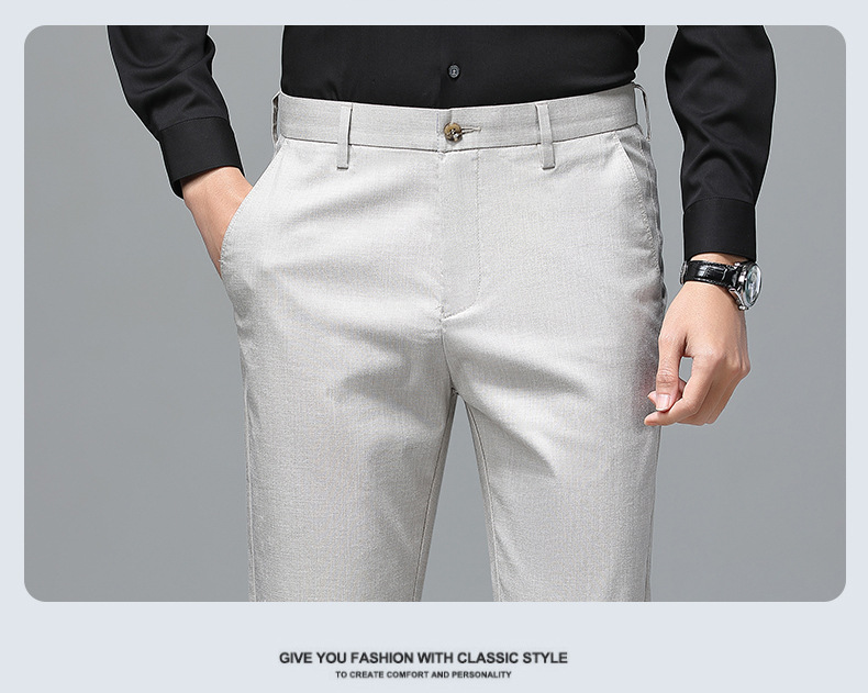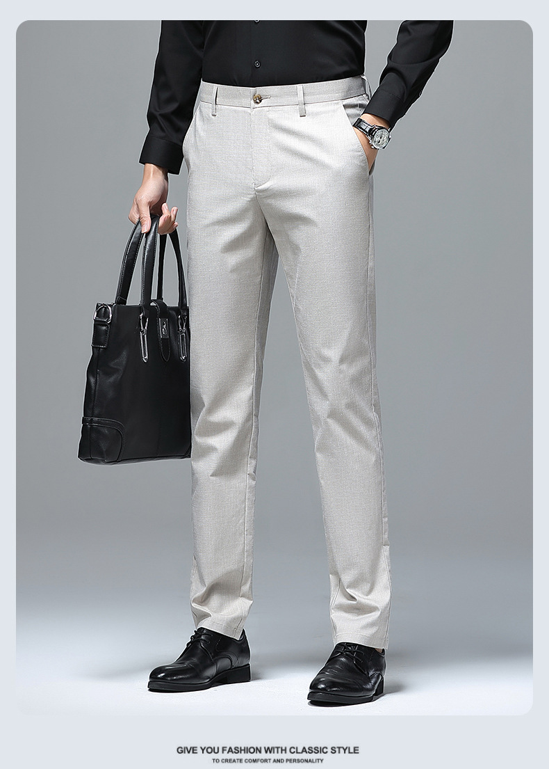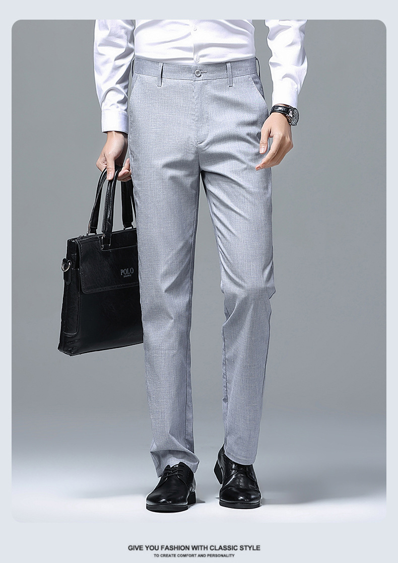 가벼운 럭셔리 텐셀 리넨 남성 비즈니스 캐주얼 바지 봄과 여름 새로운 젊고 중년의 스트레이트 롱 바지 남자 세트 바지스토어 가기