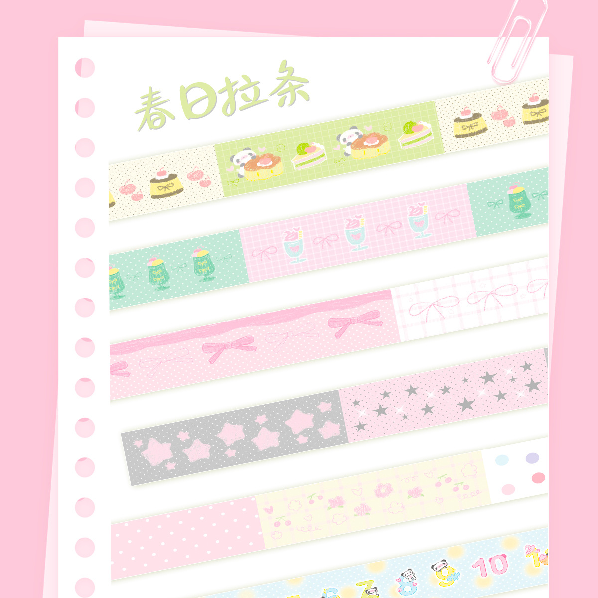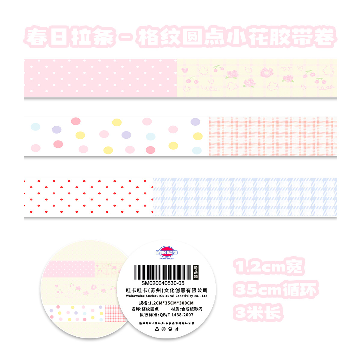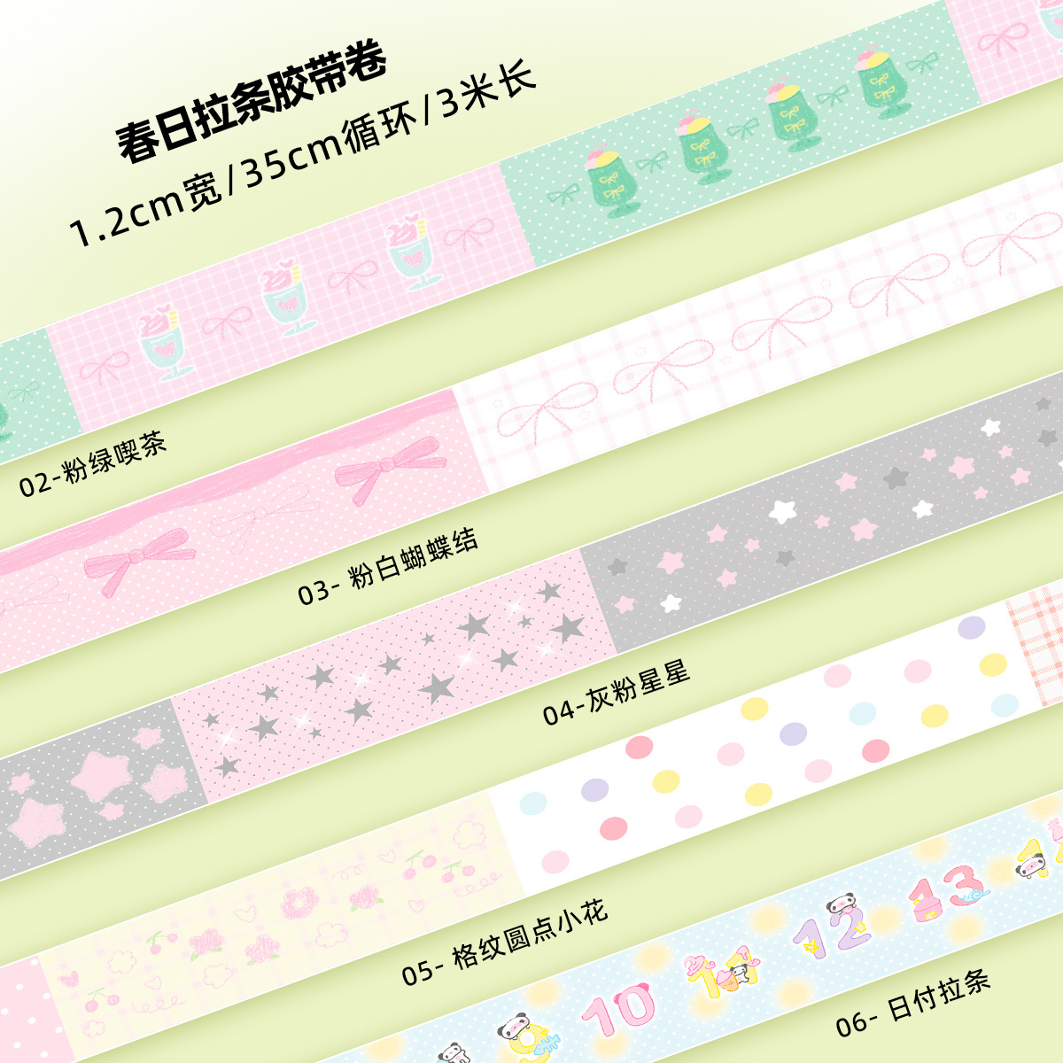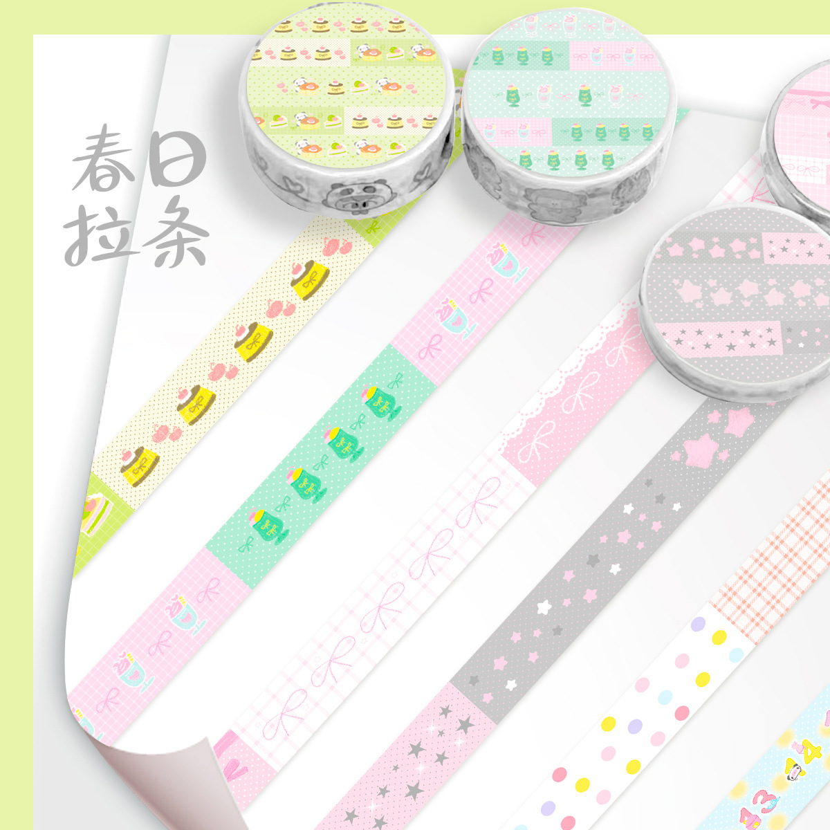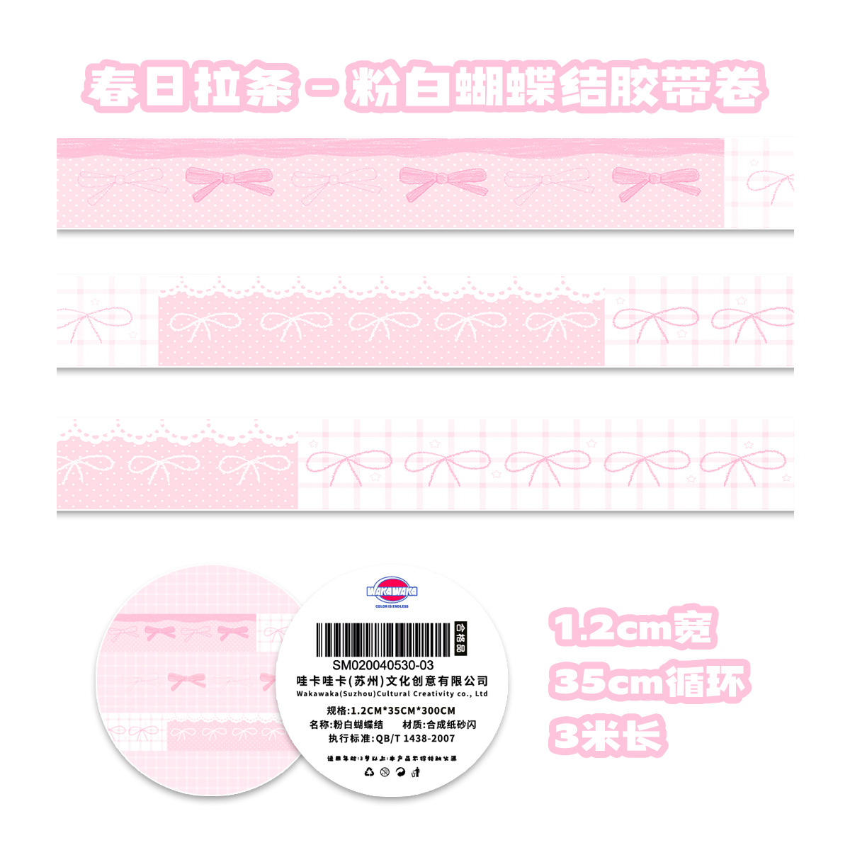 와카 와카 포켓 테이프 롤 스프링 풀 시리즈 보우 리본 귀여운 포켓 테이프 3m 루프