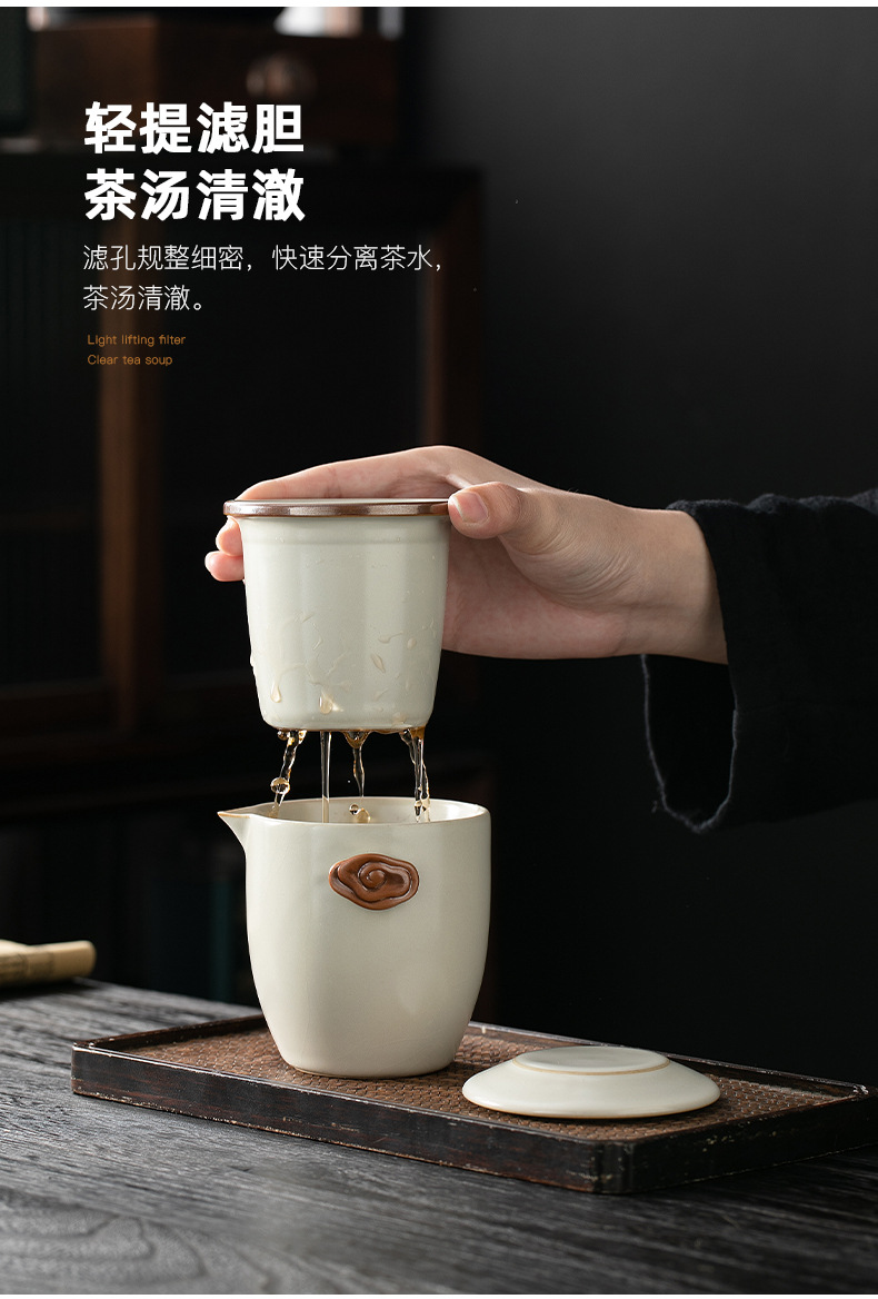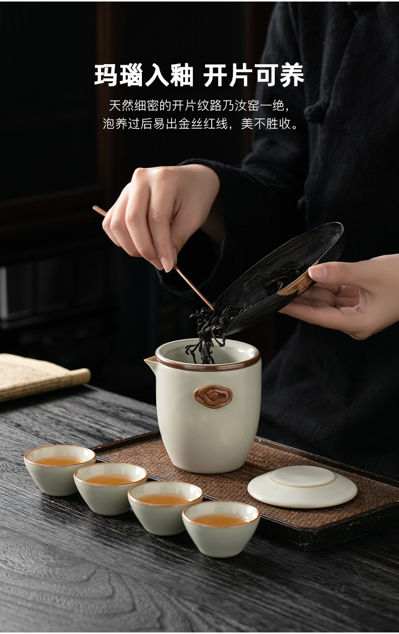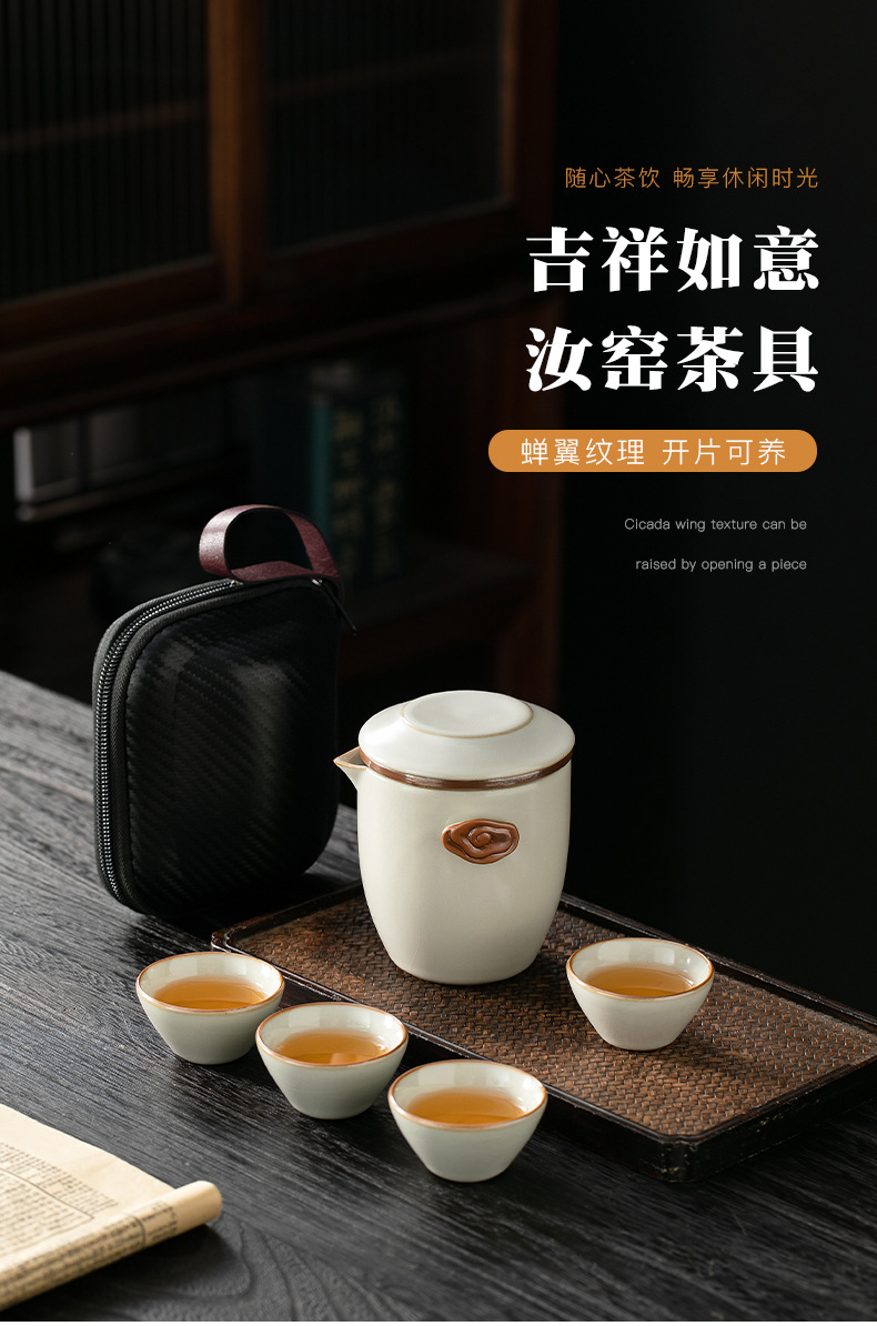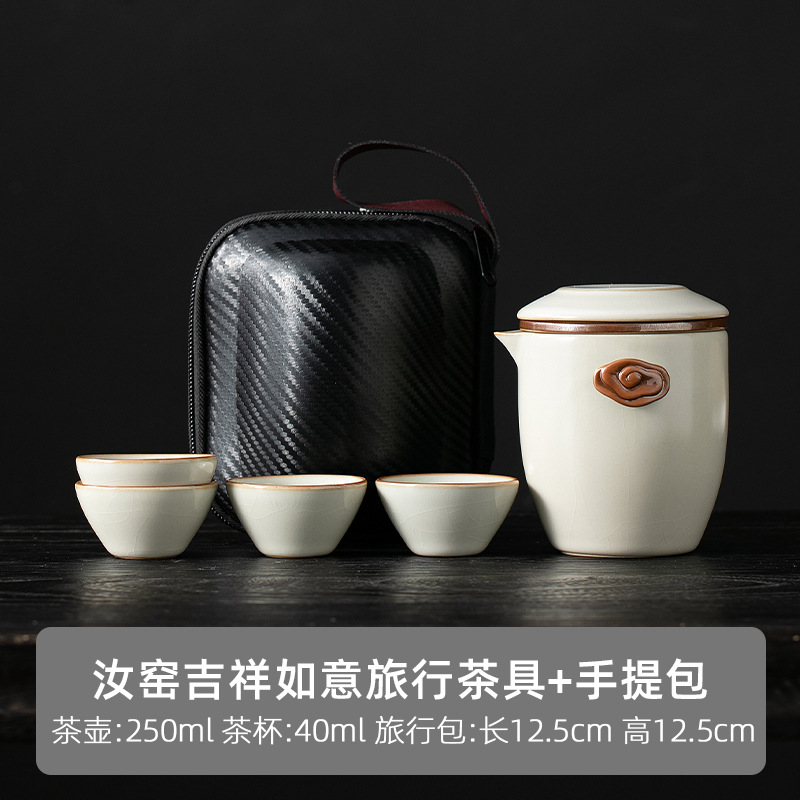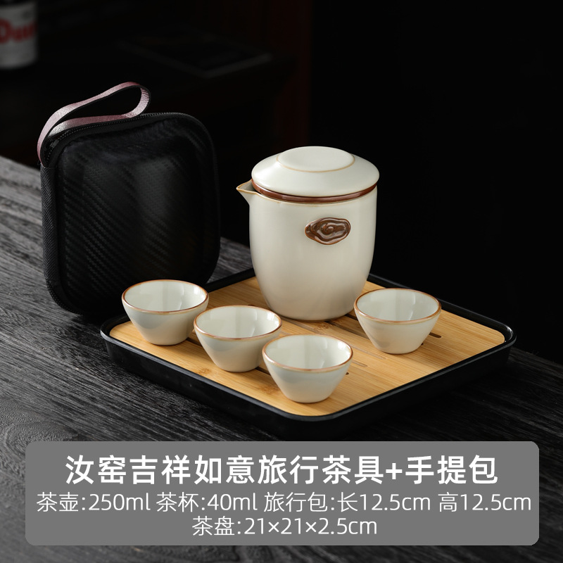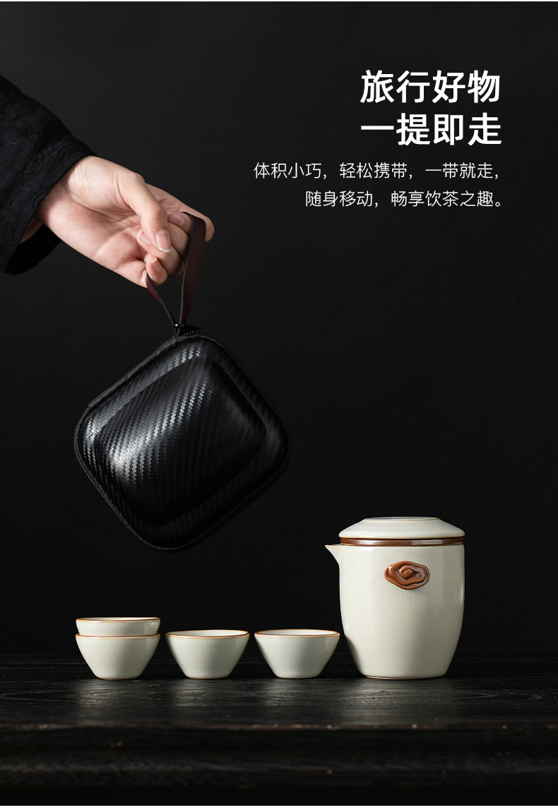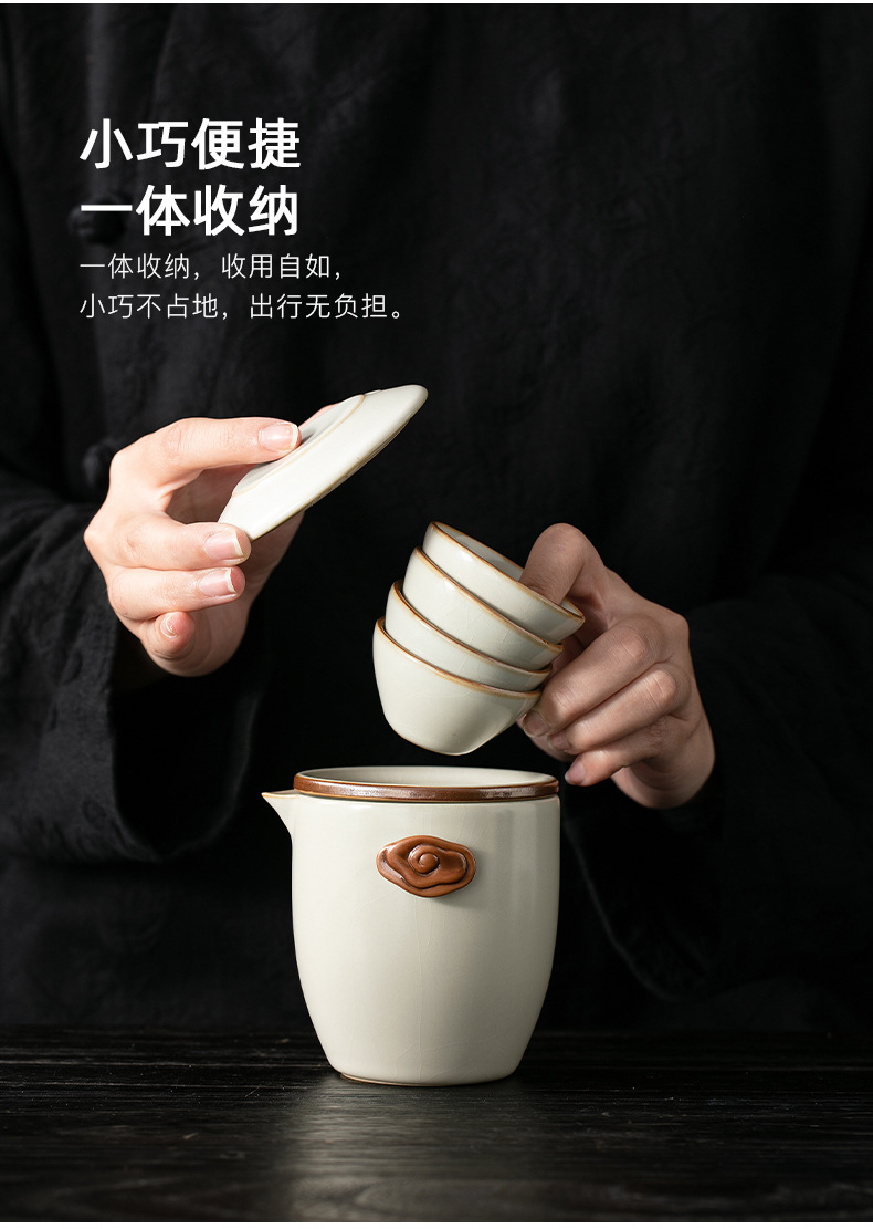 베이지 색 Ruyao 휴대용 여행 차 세트 작은 세트 간단한 쿵푸 차 냄비 티 컵 야외 캠핑 익스프레스 컵