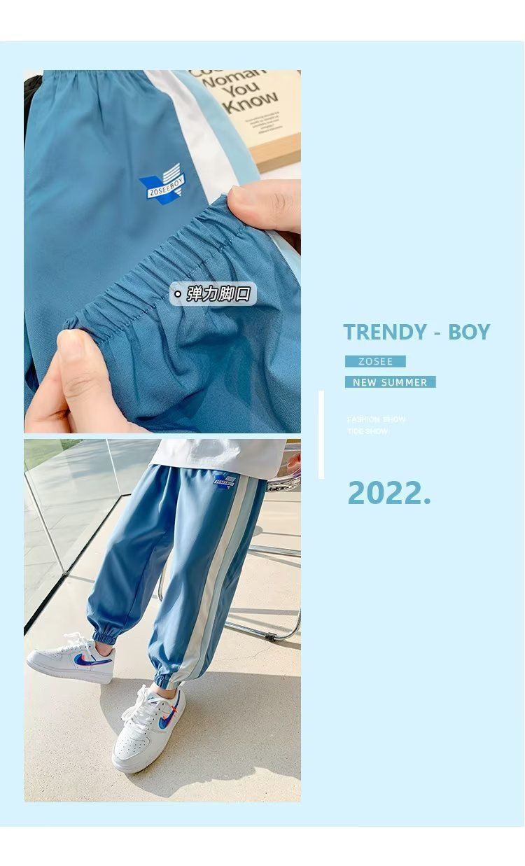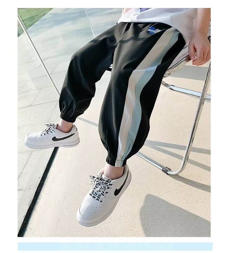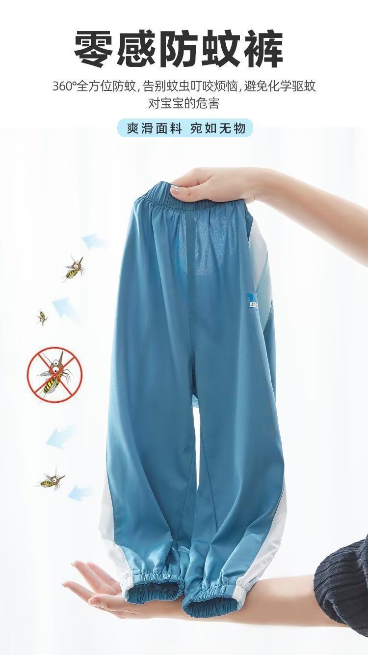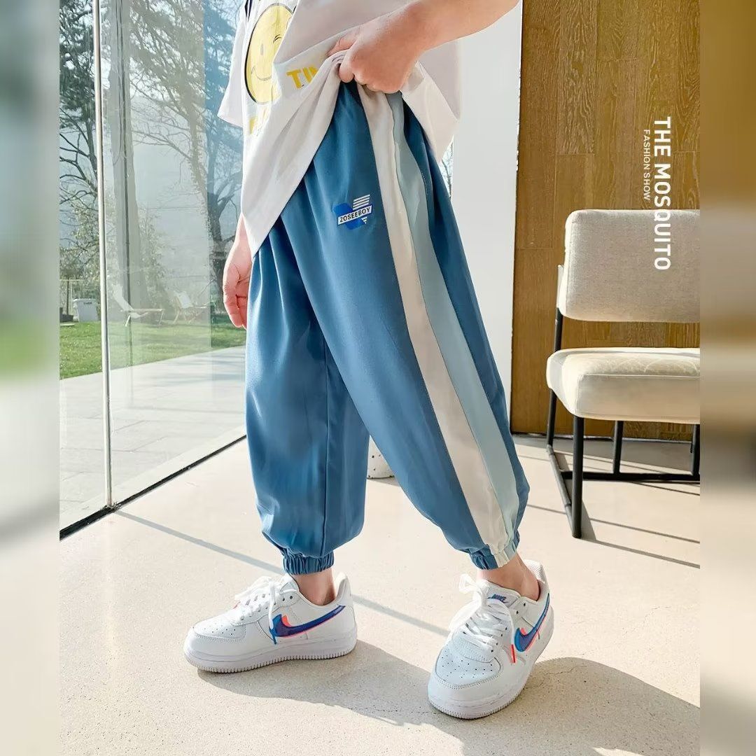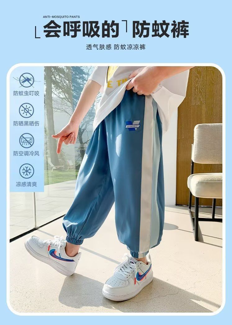남아의 모기 방지 바지 여름 어린이 착용 2024 새로운 소년 캐주얼 바지 얇은 통기성 중형 및 대형 어린이 빠른 건조 바지