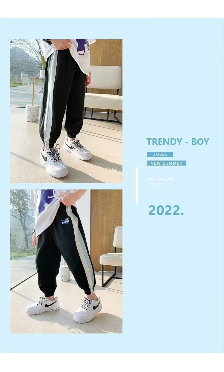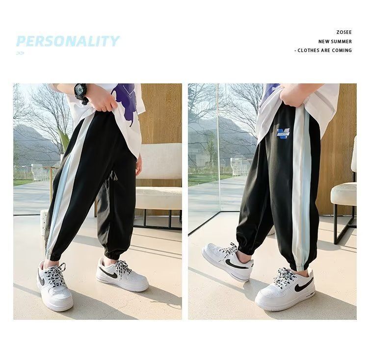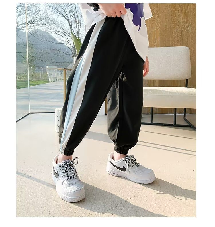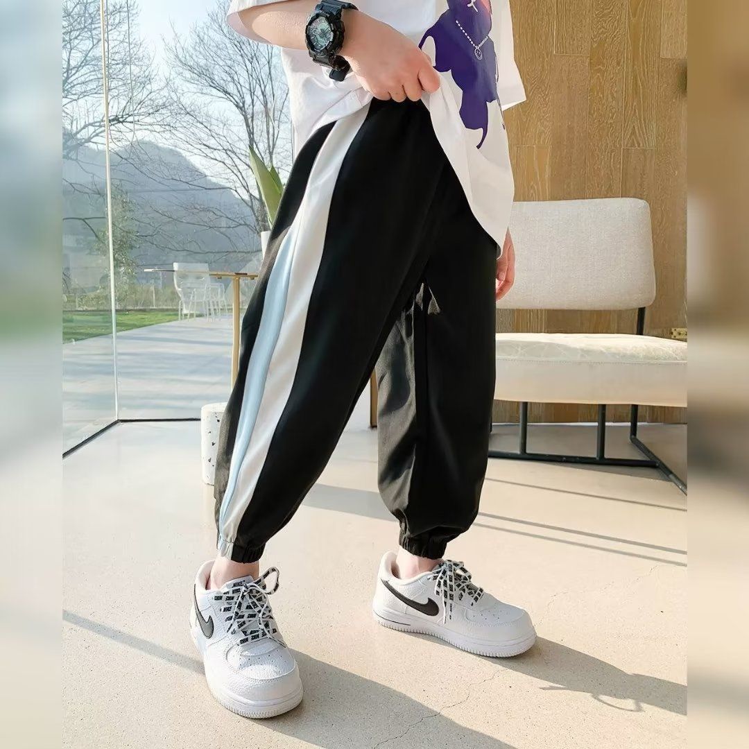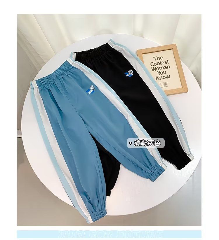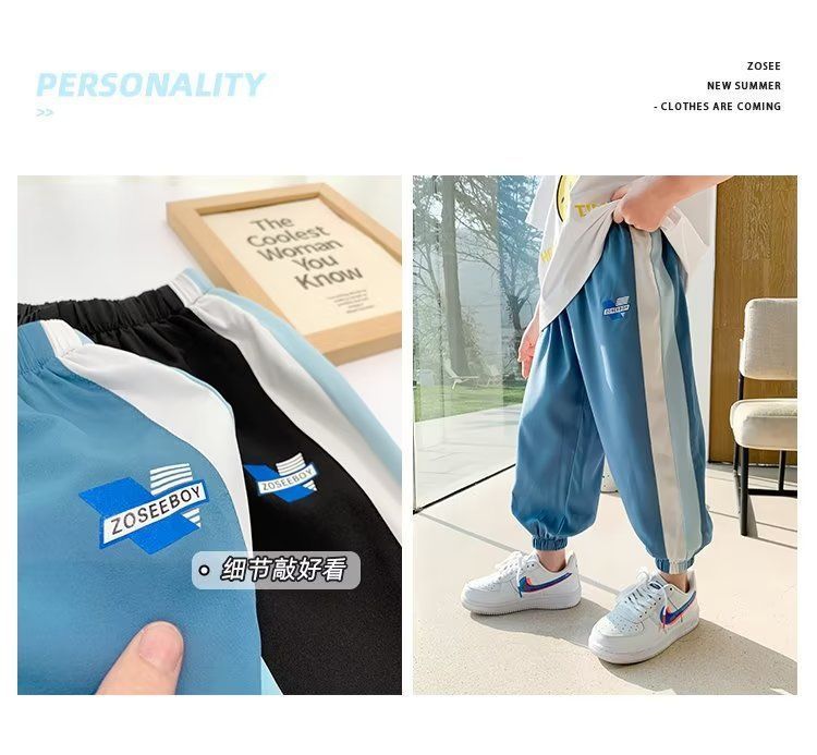 남아의 모기 방지 바지 여름 어린이 착용 2024 새로운 소년 캐주얼 바지 얇은 통기성 중형 및 대형 어린이 빠른 건조 바지