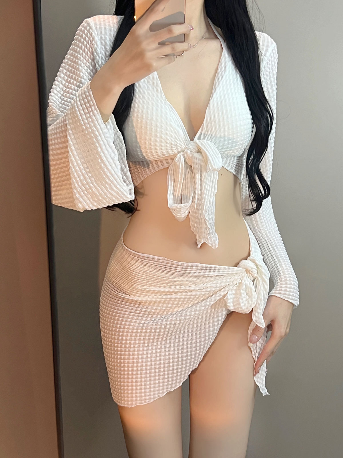 비키니 수영복 여성용 2024 새로운 4 피스 세트 화이트 섹시 트렌디 스커트 스플릿 수영복 싼야 휴가 온천스토어 가기