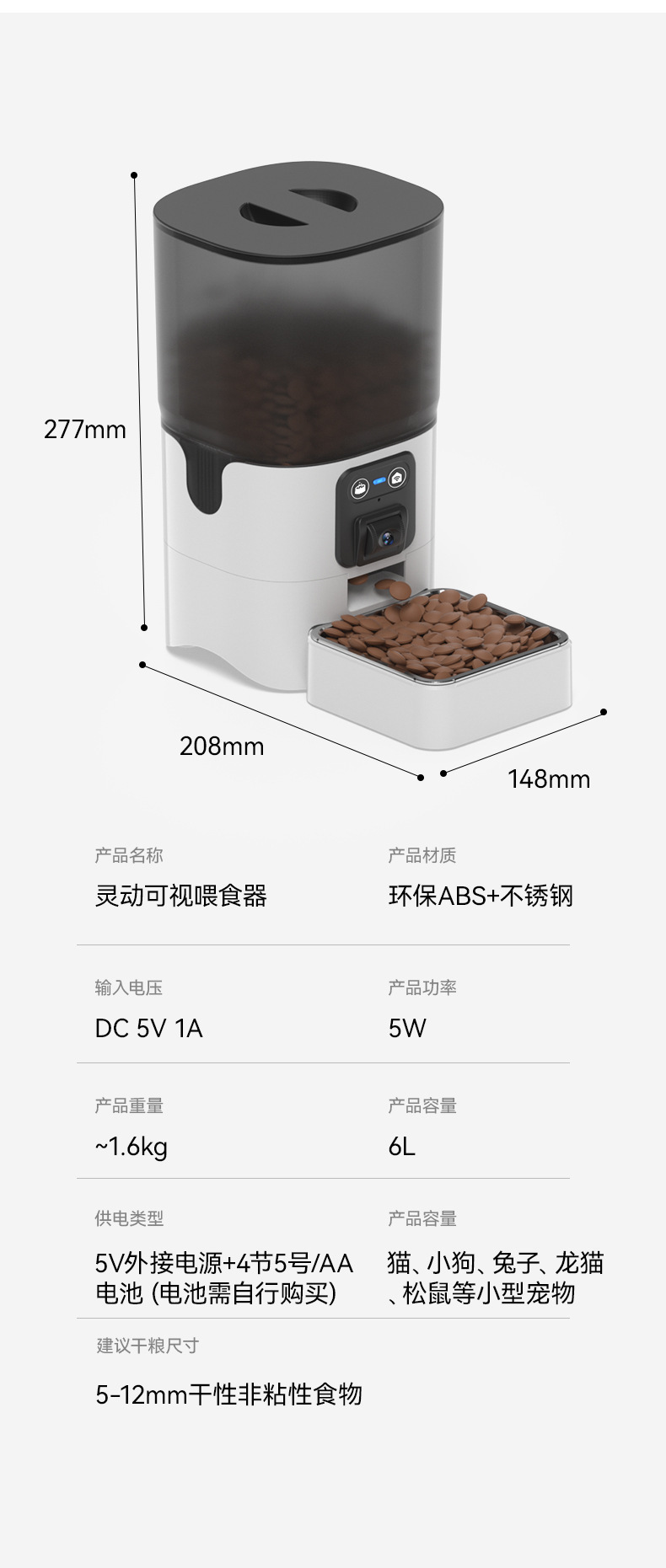 애완 동물 지능형 피더 타이밍 원격 공급 6L 개 먹이 기계 스마트 비디오 자동 피더