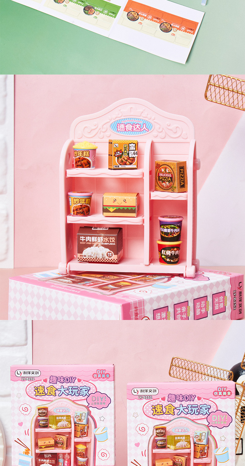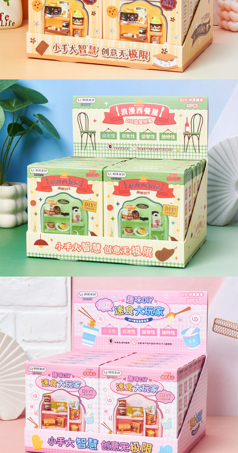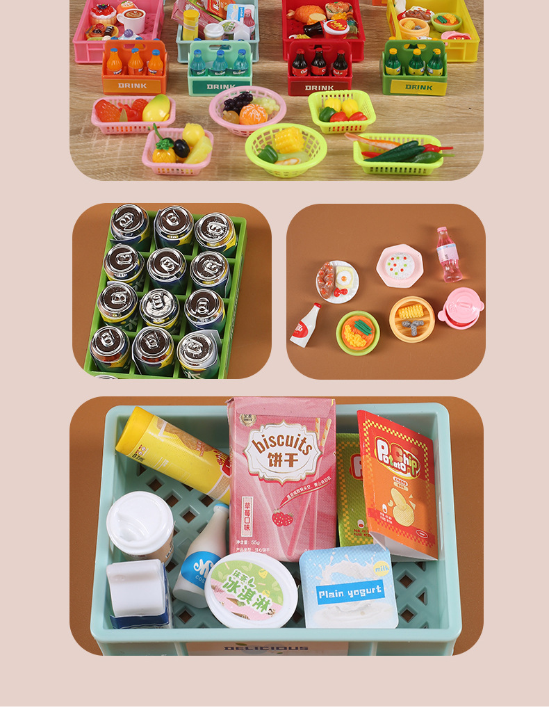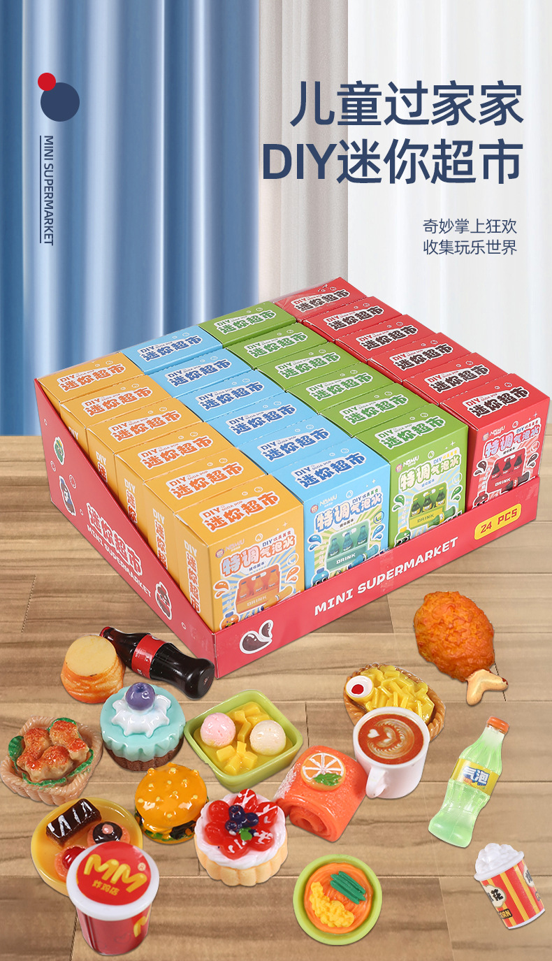 새로운 DIY 음식 시뮬레이션 어린이 pvc 플라스틱 작은 장난감 컬러 박스 미니 핸드 헬드 재미있는 인형스토어 가기