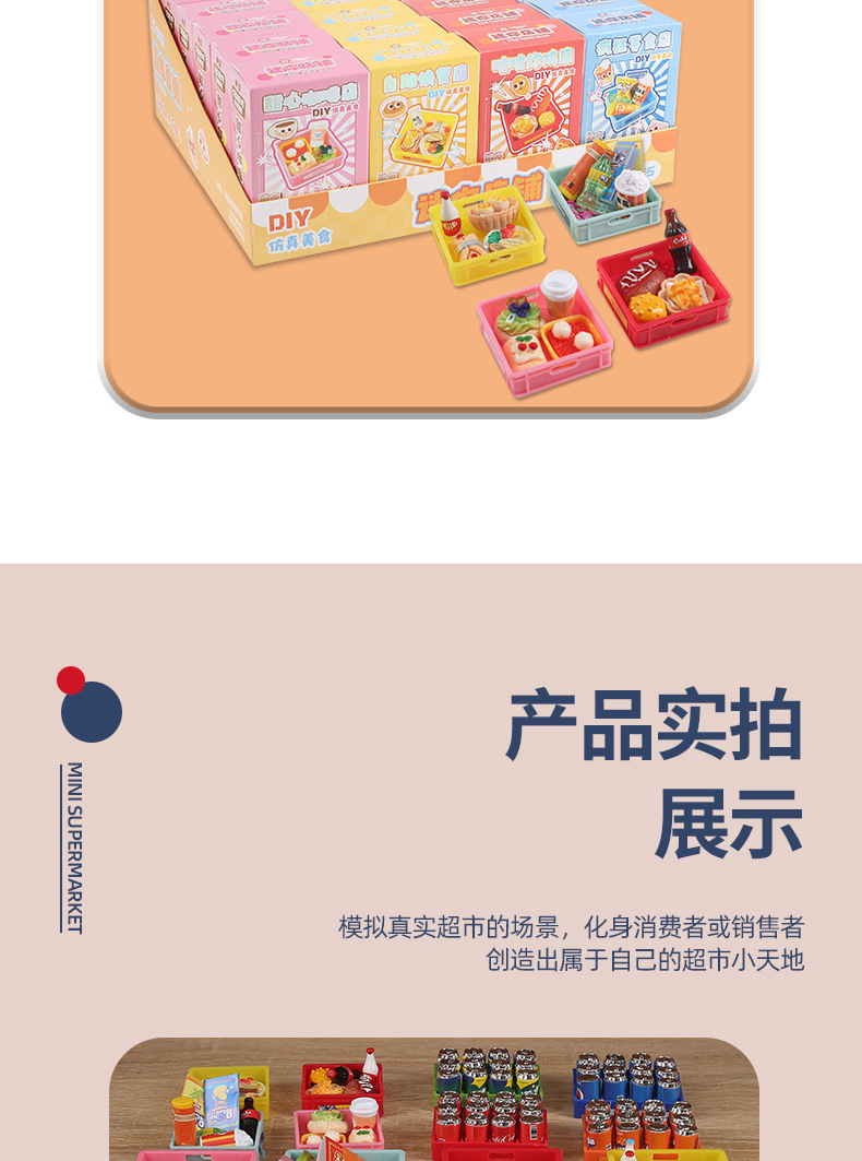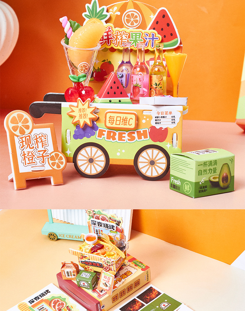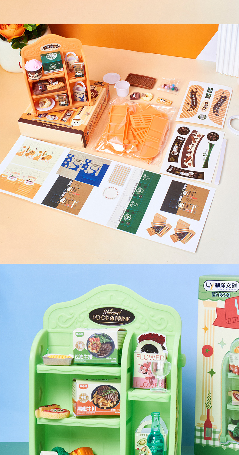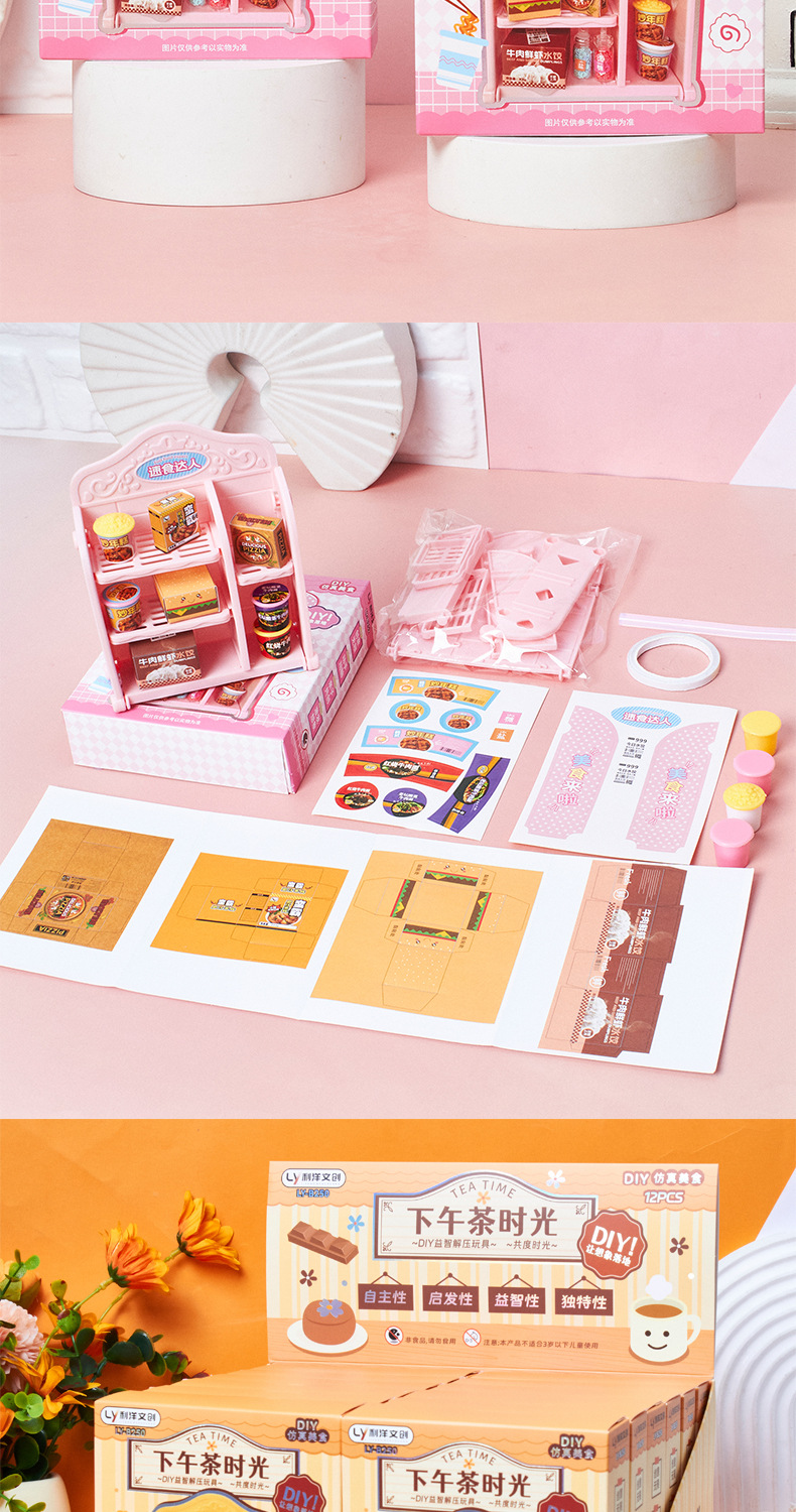 새로운 DIY 음식 시뮬레이션 어린이 pvc 플라스틱 작은 장난감 컬러 박스 미니 핸드 헬드 재미있는 인형스토어 가기