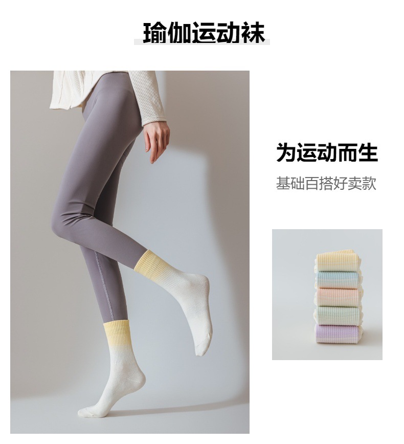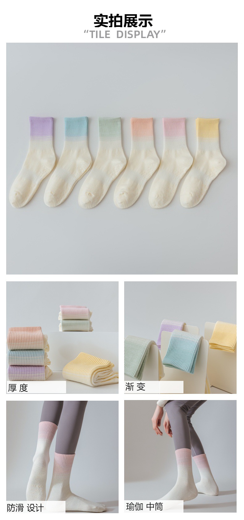 그라디언트 컬러-여성용 미들 튜브 요가 양말 화이트 양말 여성용 트렌디 한 봄 및 여름 코튼 양말 스포츠 통기성 땀 흡수 스타킹