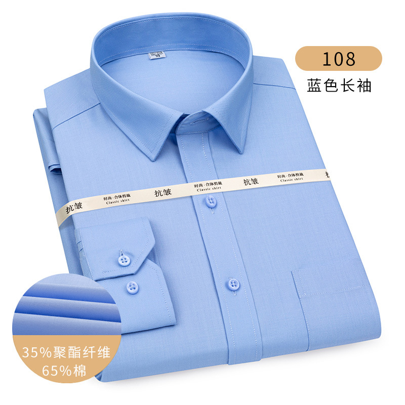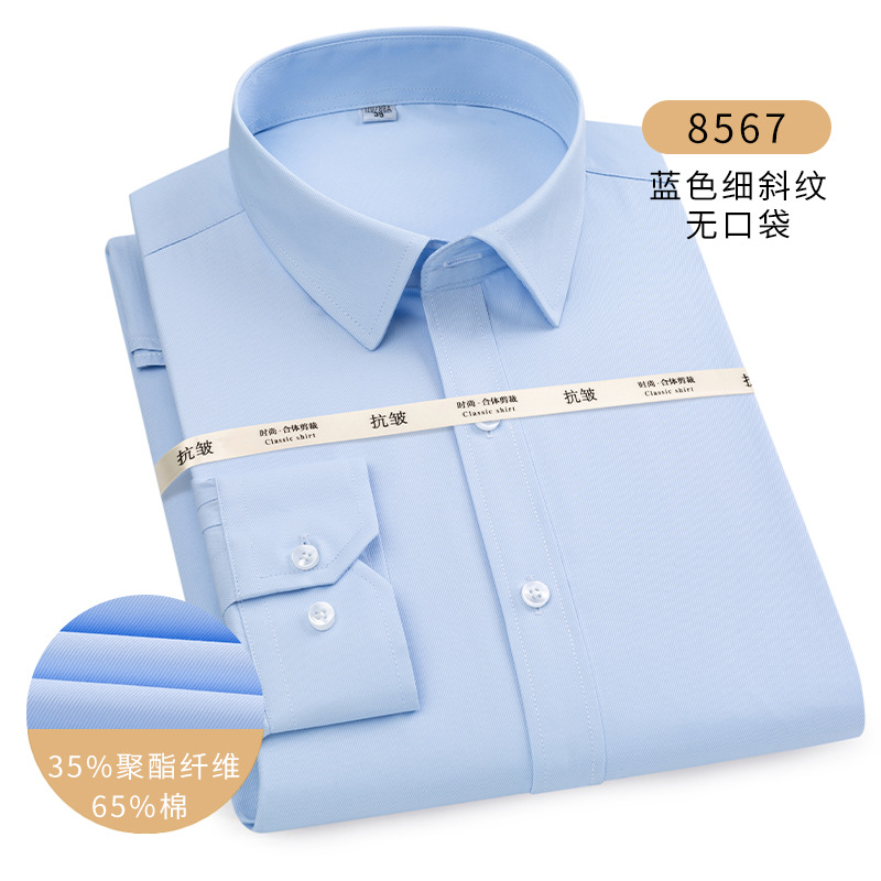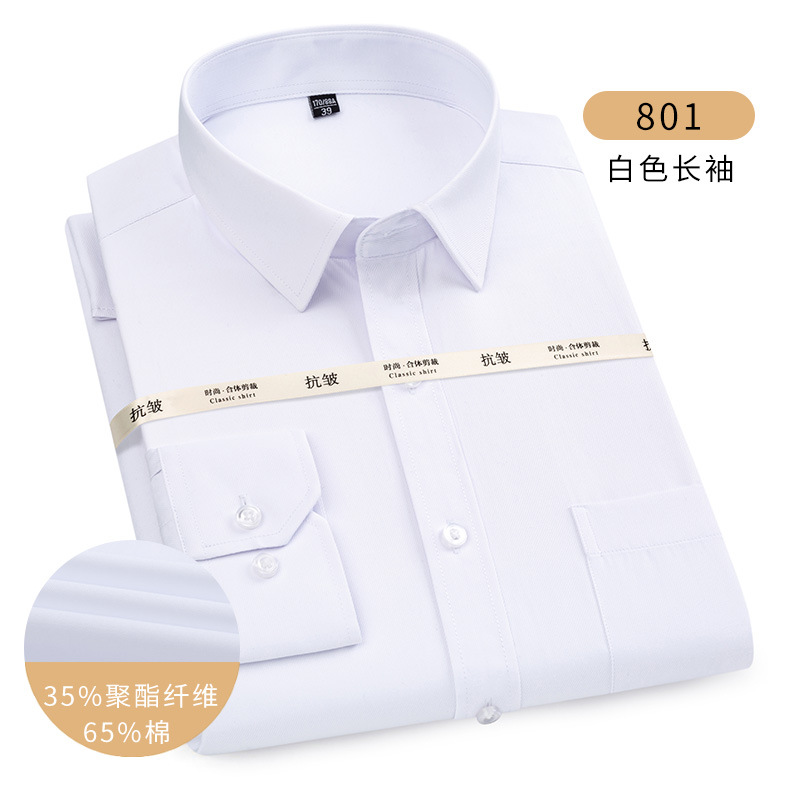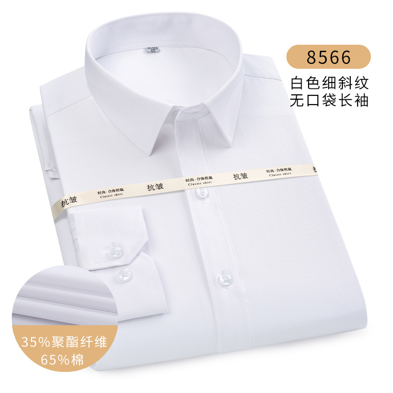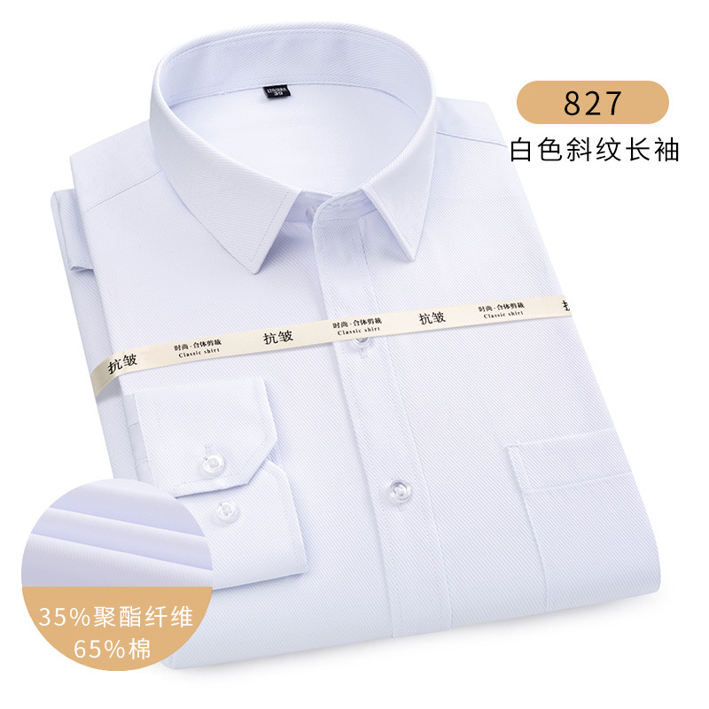 남성용 긴팔 봄과 가을 화이트 셔츠 하이 엔드 비즈니스 원피스 비철 세트 셔츠 단색 느슨한 플러스 사이즈 접힘스토어 가기