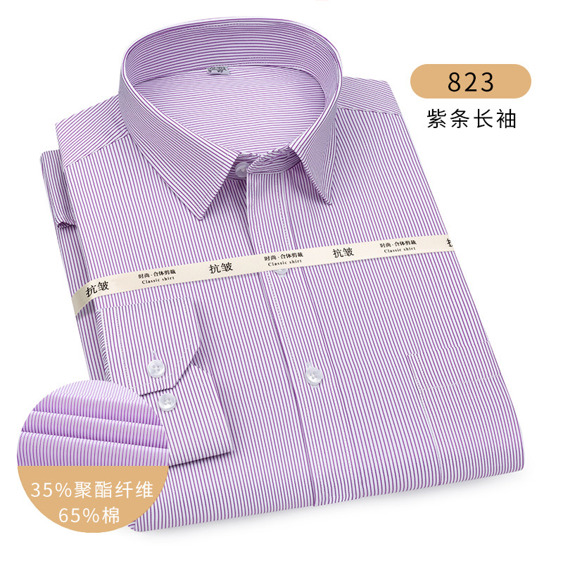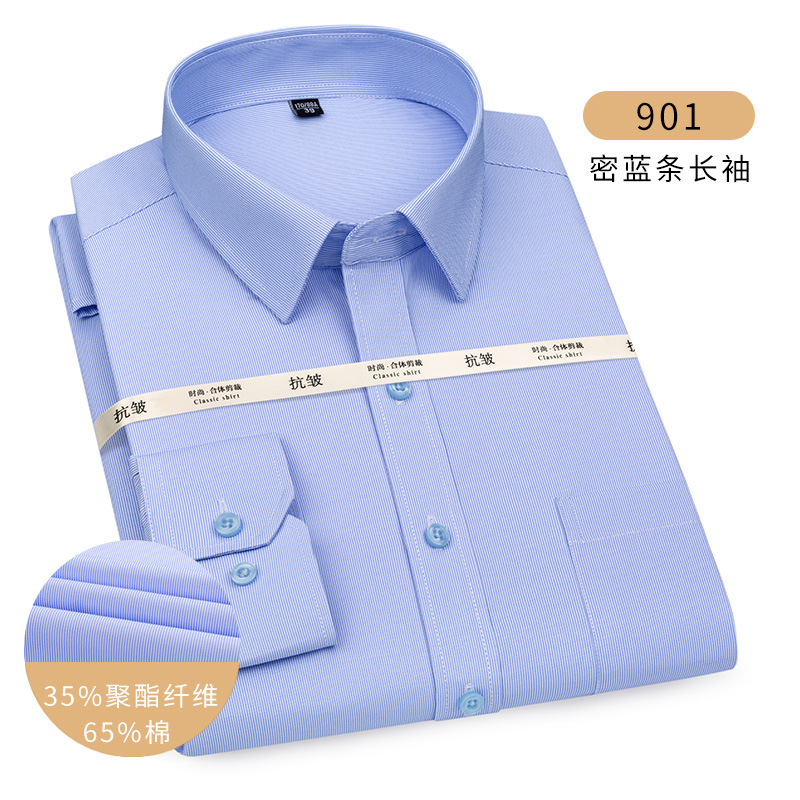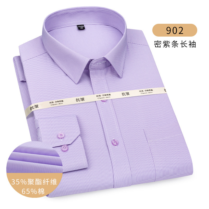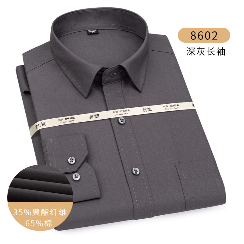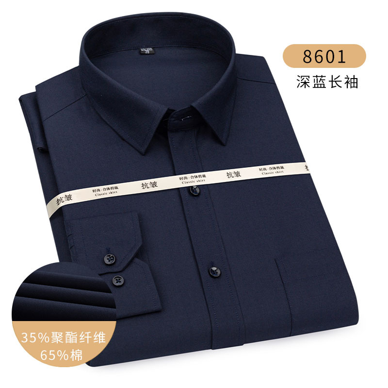 남성용 긴팔 봄과 가을 화이트 셔츠 하이 엔드 비즈니스 원피스 비철 세트 셔츠 단색 느슨한 플러스 사이즈 접힘스토어 가기