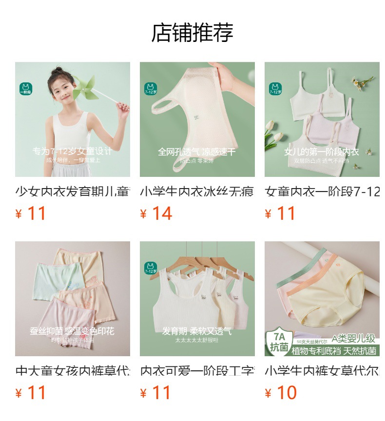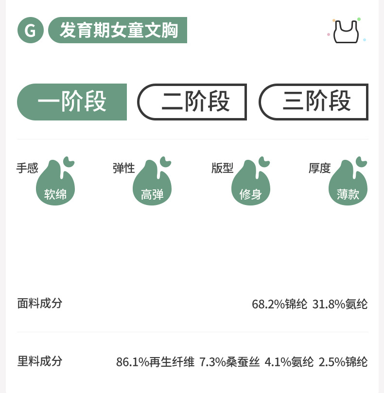 발달형 속옷 1 단계 아이스실크 트레이스 통기성 중견 어린이 조끼 여학생 초등학생 여중생 브래지어