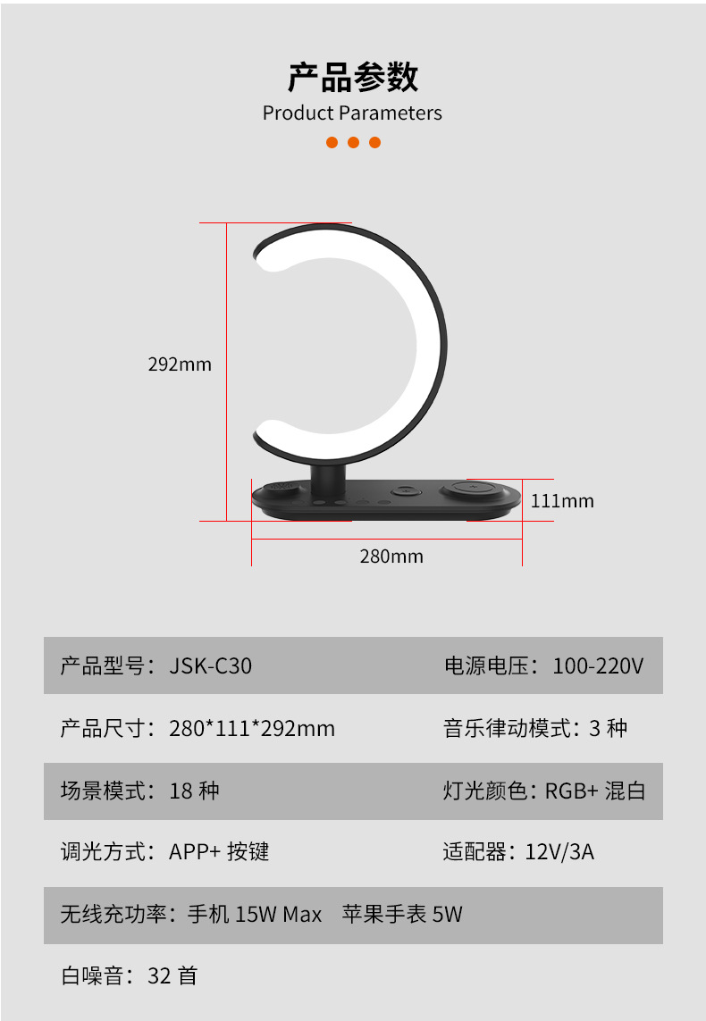 대기 테이블 램프 전기 경쟁 방 국경 새로운 rgb 지능형 매직 화이트 노이즈 침실 음악 침대 옆 램프 무선 충전