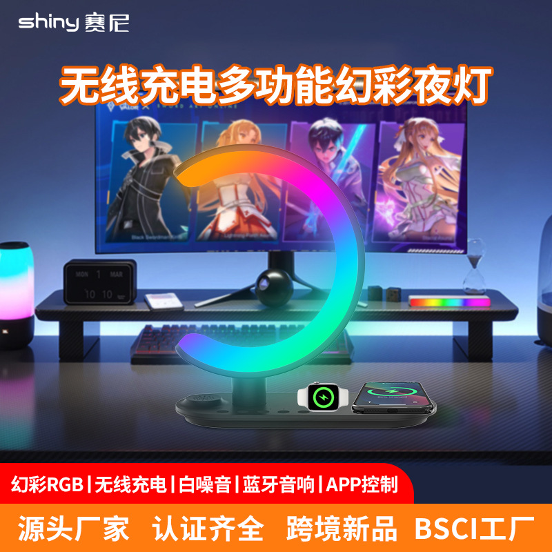 대기 테이블 램프 전기 경쟁 방 국경 새로운 rgb 지능형 매직 화이트 노이즈 침실 음악 침대 옆 램프 무선 충전스토어 가기