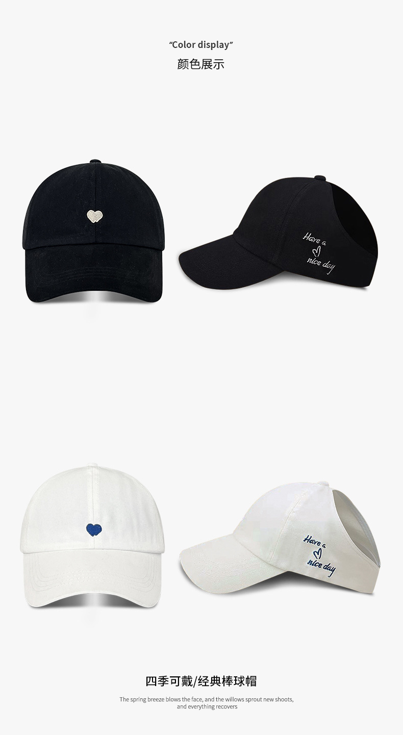 여름 야외 햇살 야구 모자 대학 스타일 달콤한 멋진 사랑 자수 폰 꼬리 모자 학생 스포츠 모자