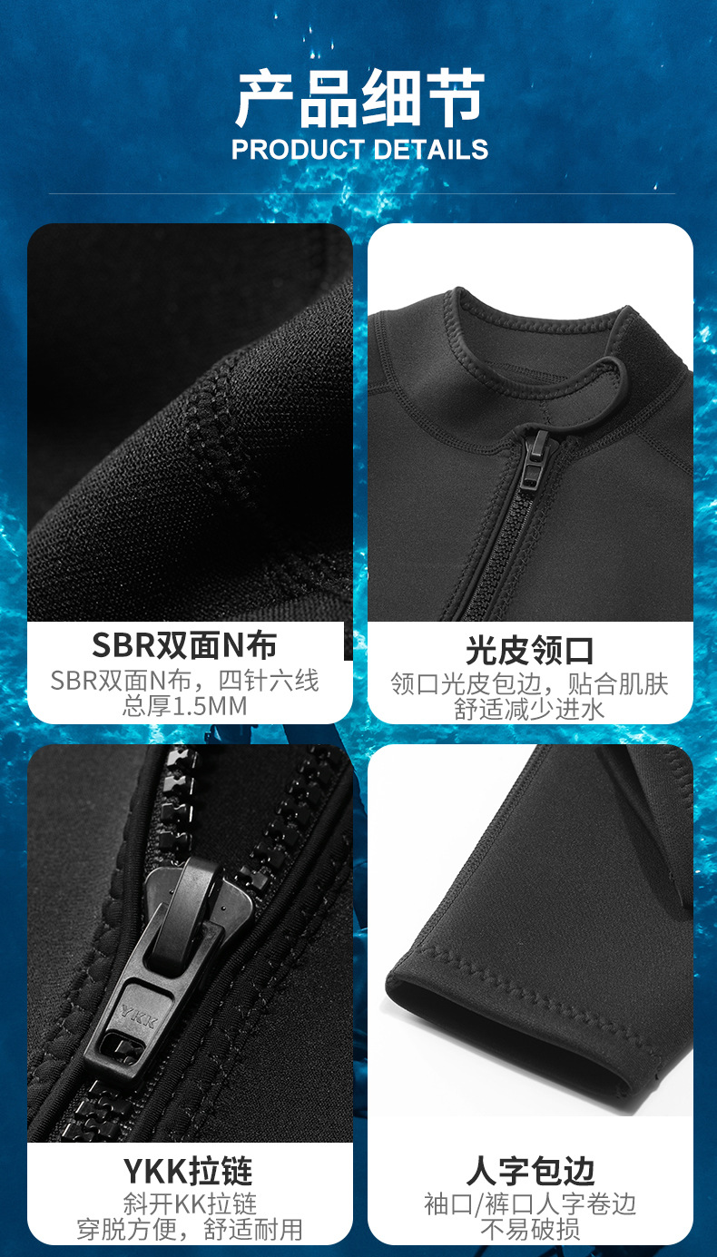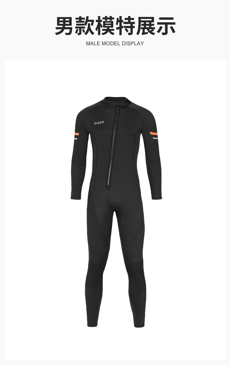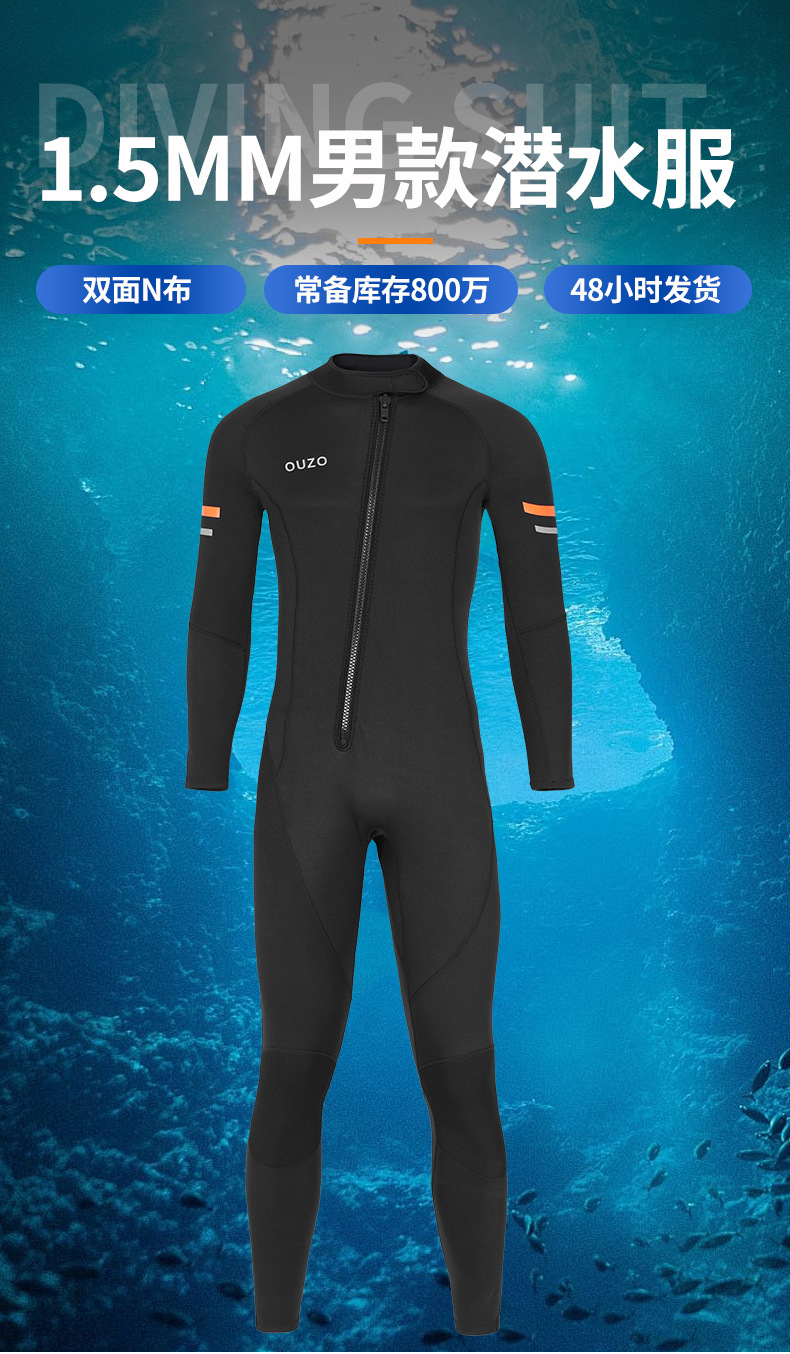 1.5mm长袖连体潜水服男士前拉链款潜水衣防寒防晒保暖冬泳冲浪水母衣